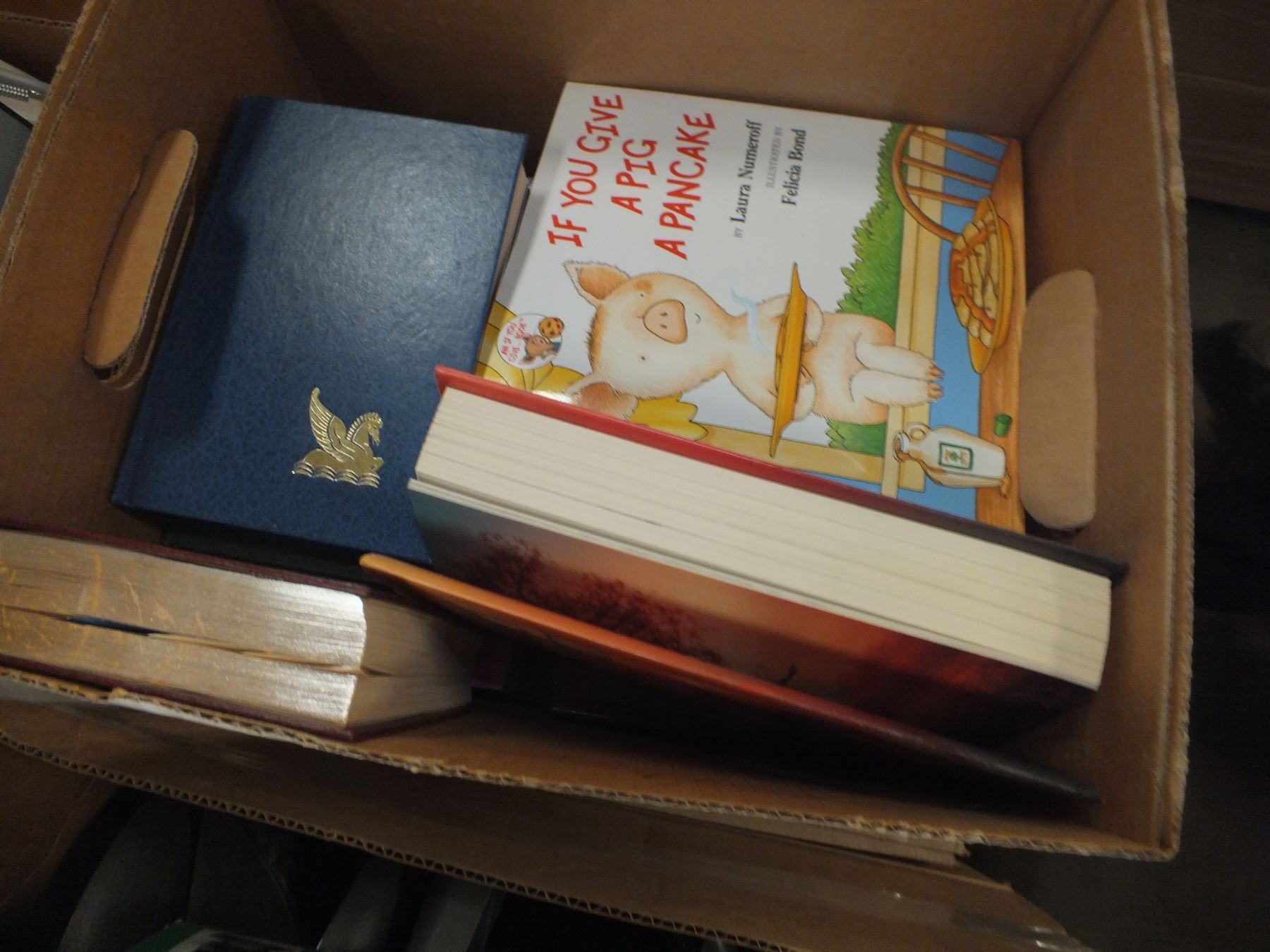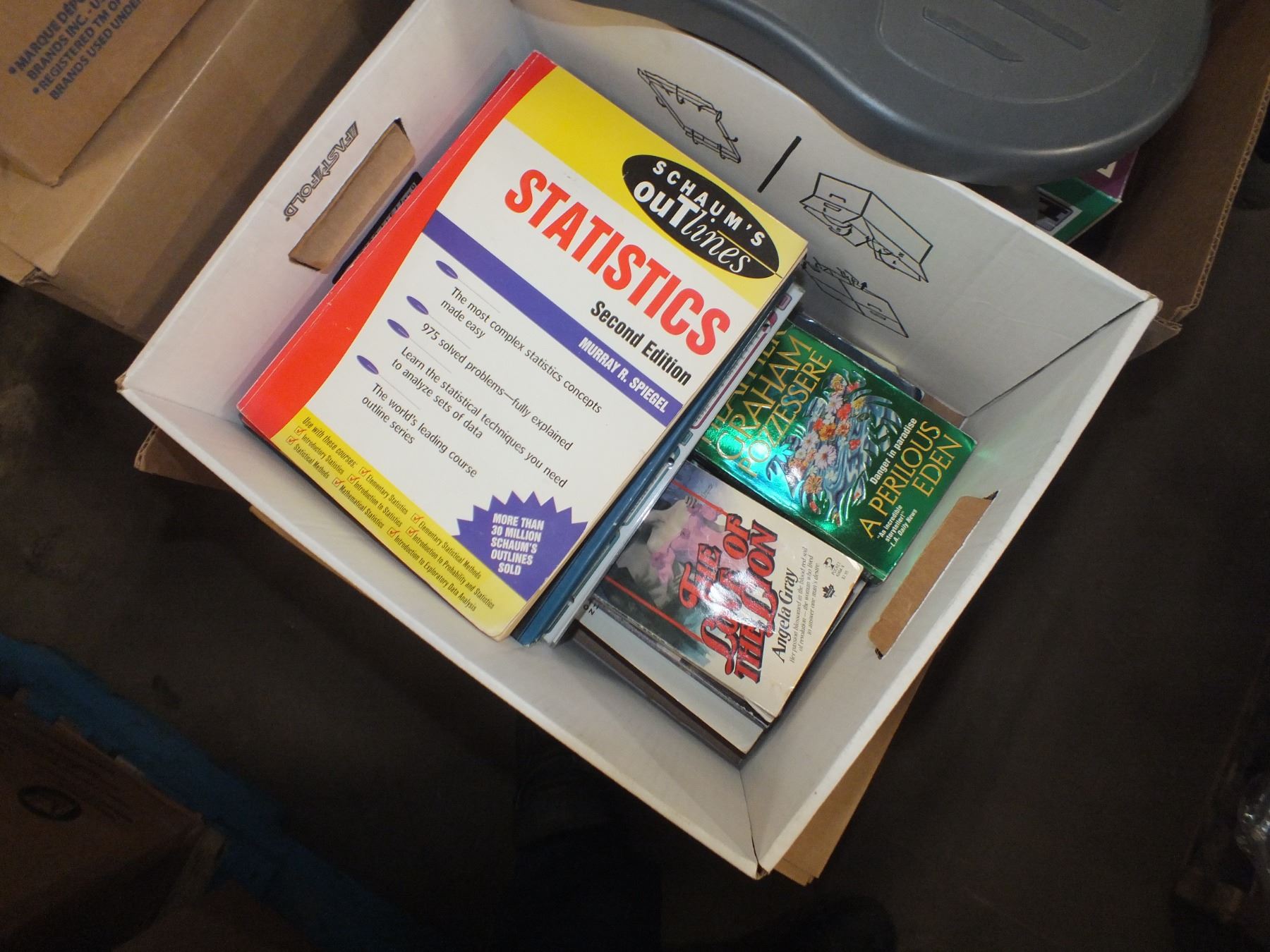 you get it all for one money, lamps, tennis balls, assorted books, rolls of brown paper, poster tubes...used