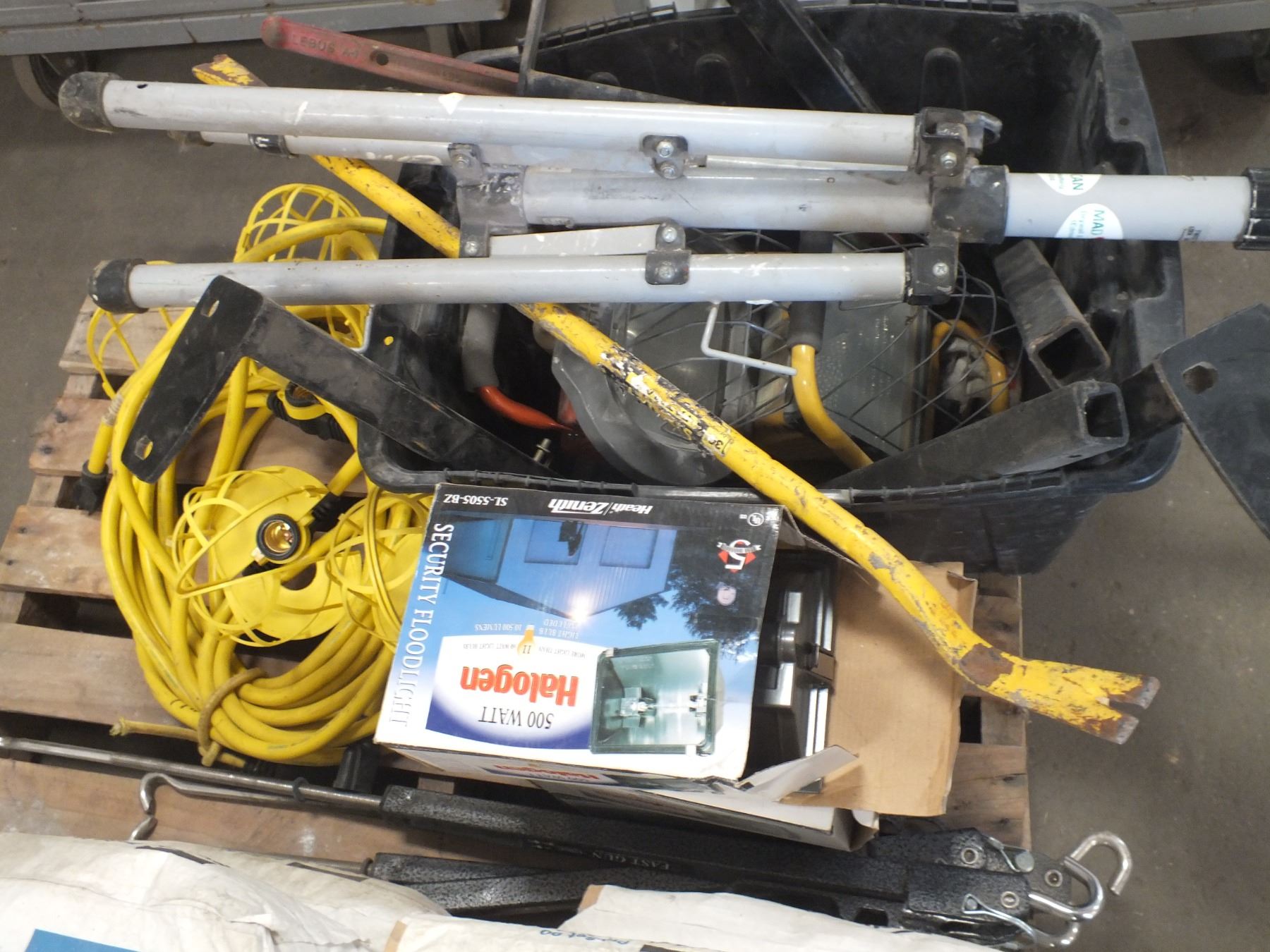you get it all for one money, 2 security flood lights, tripod, ratchet boomers, 4 fast gun spring loaded turn buckles, and a string light....used