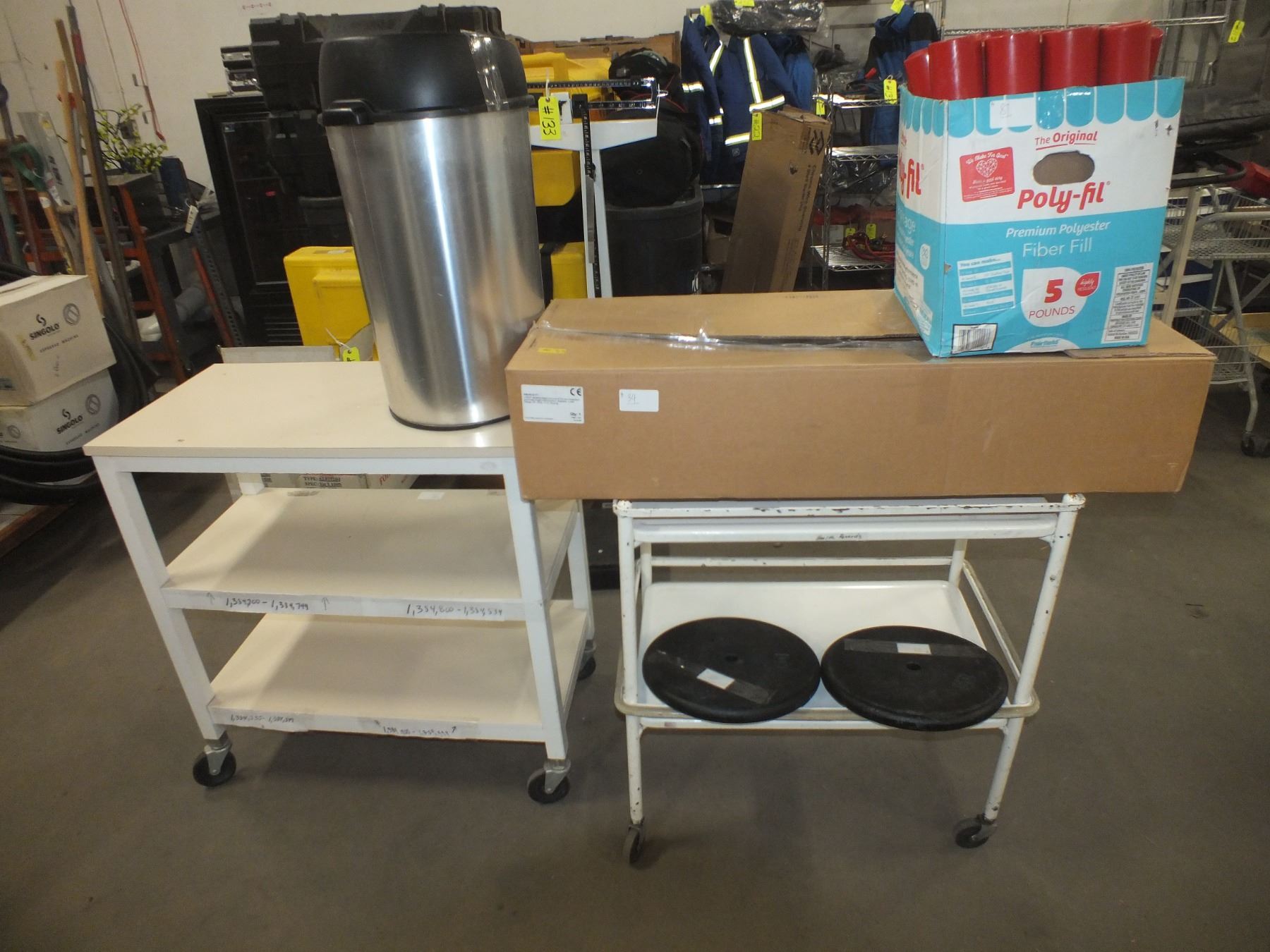 you get mailing tubes, 2 weights, garbage can, monitor arm, 2 carts on wheels...used