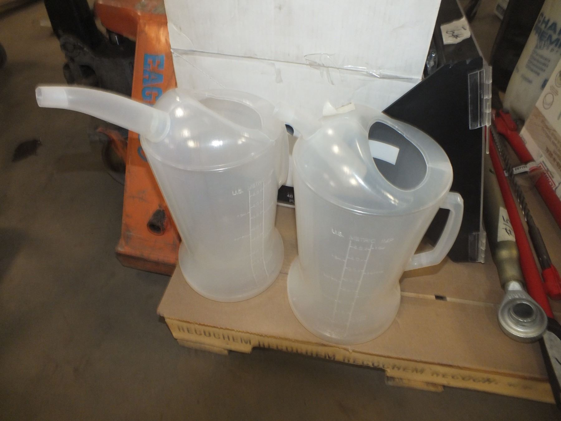 you get 2 oil jugs, 9 small sprayers and a parts bin...used