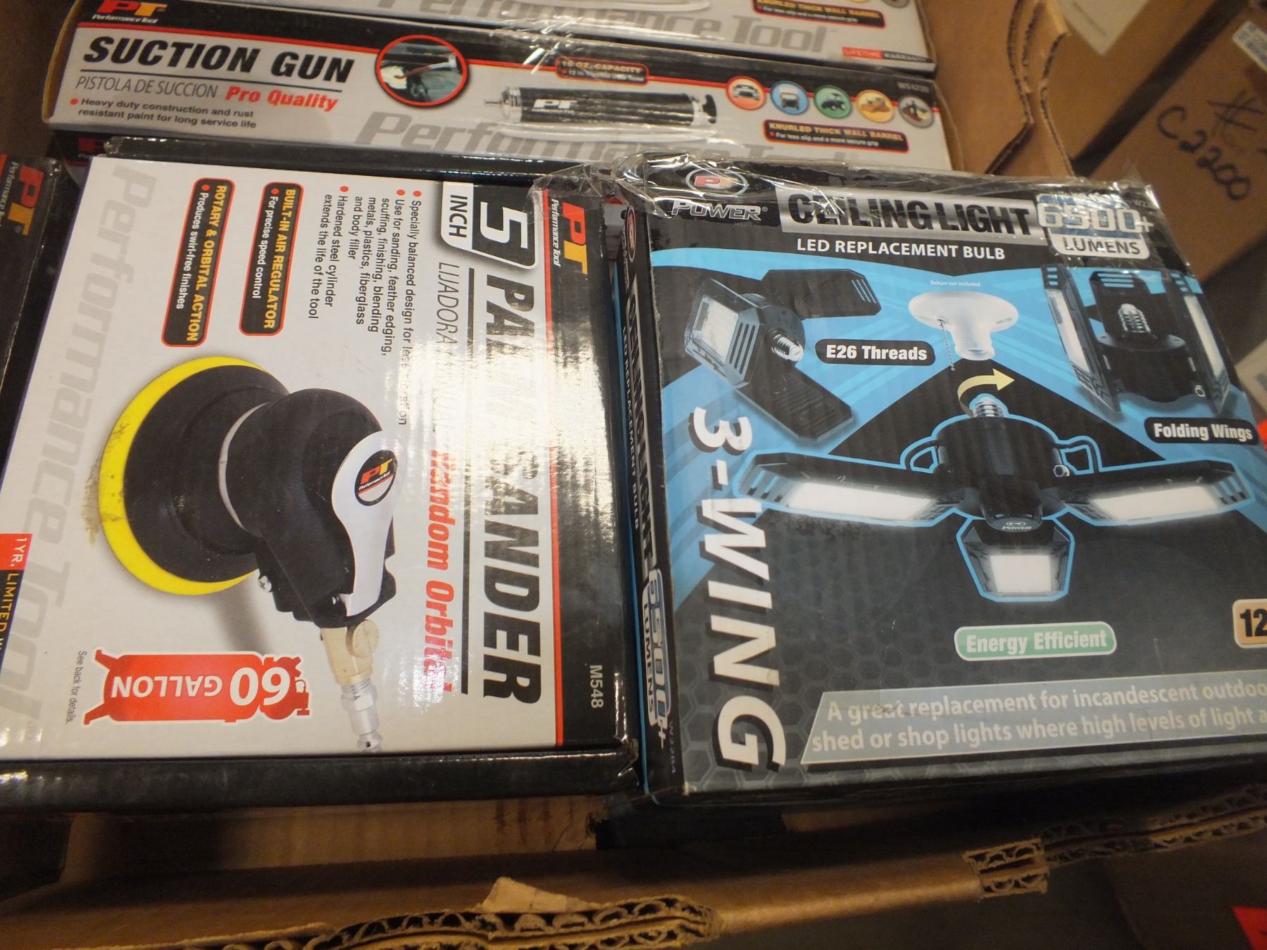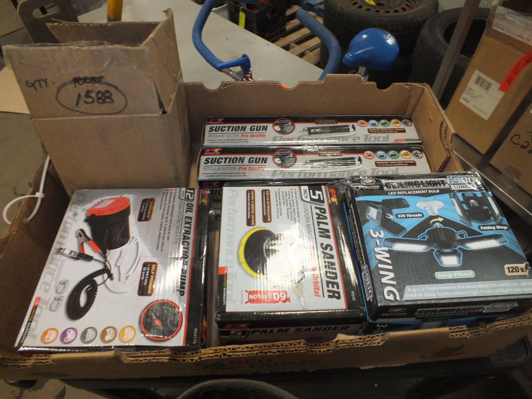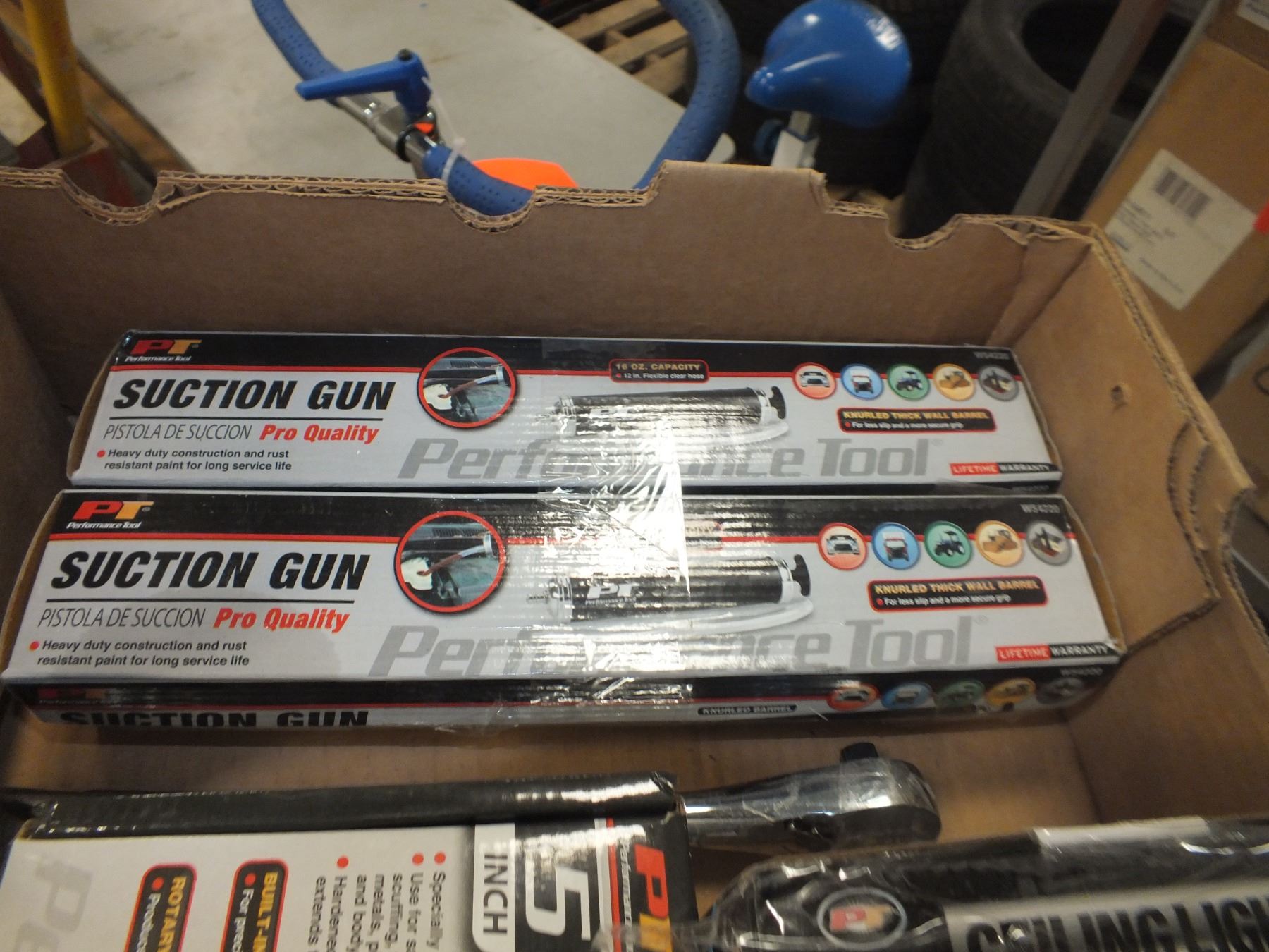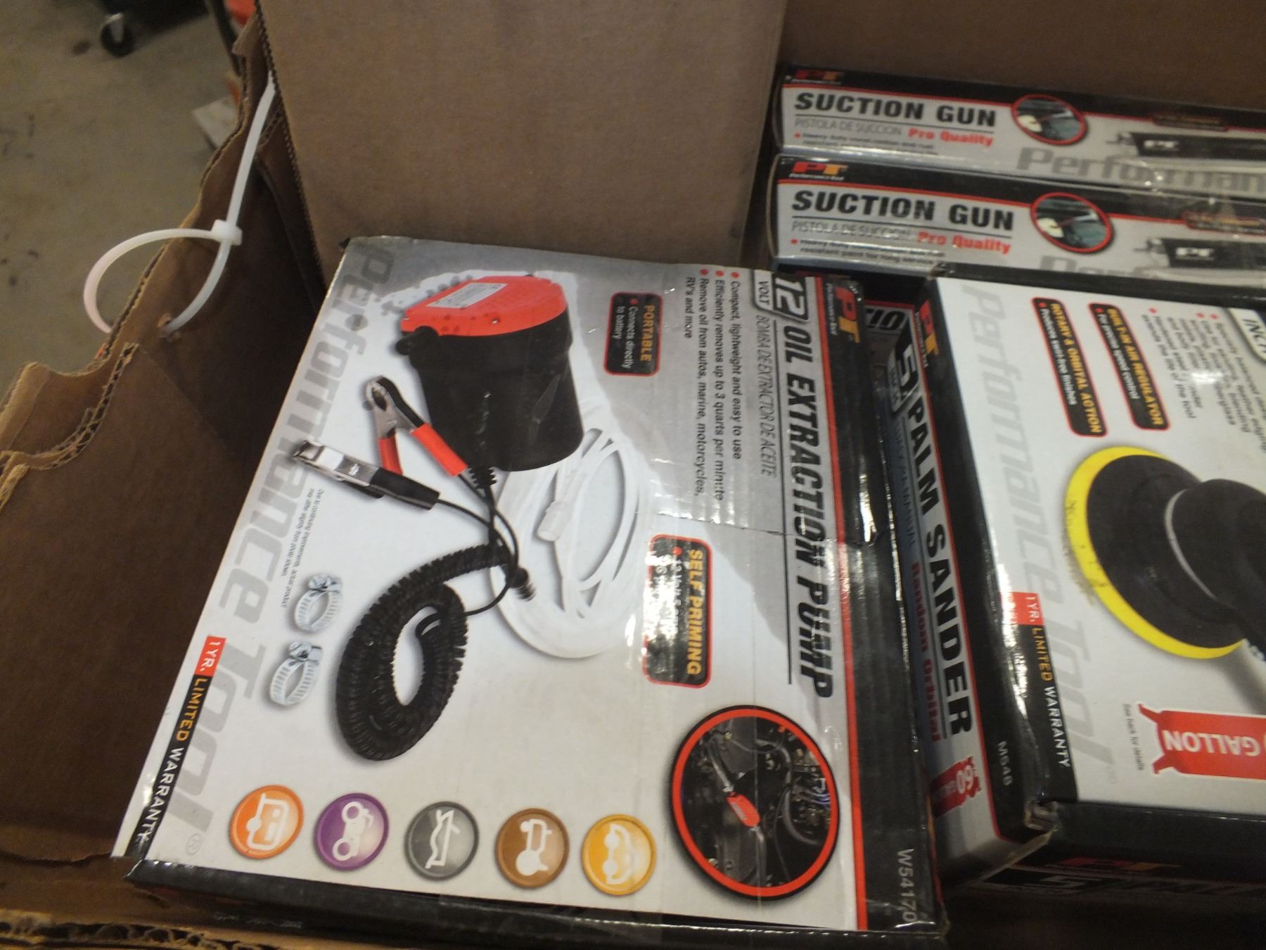 you get 2 suction guns, 12 volt extraction pump, 5" air sander, small work light, metal hardware, 1 large ratchet....used