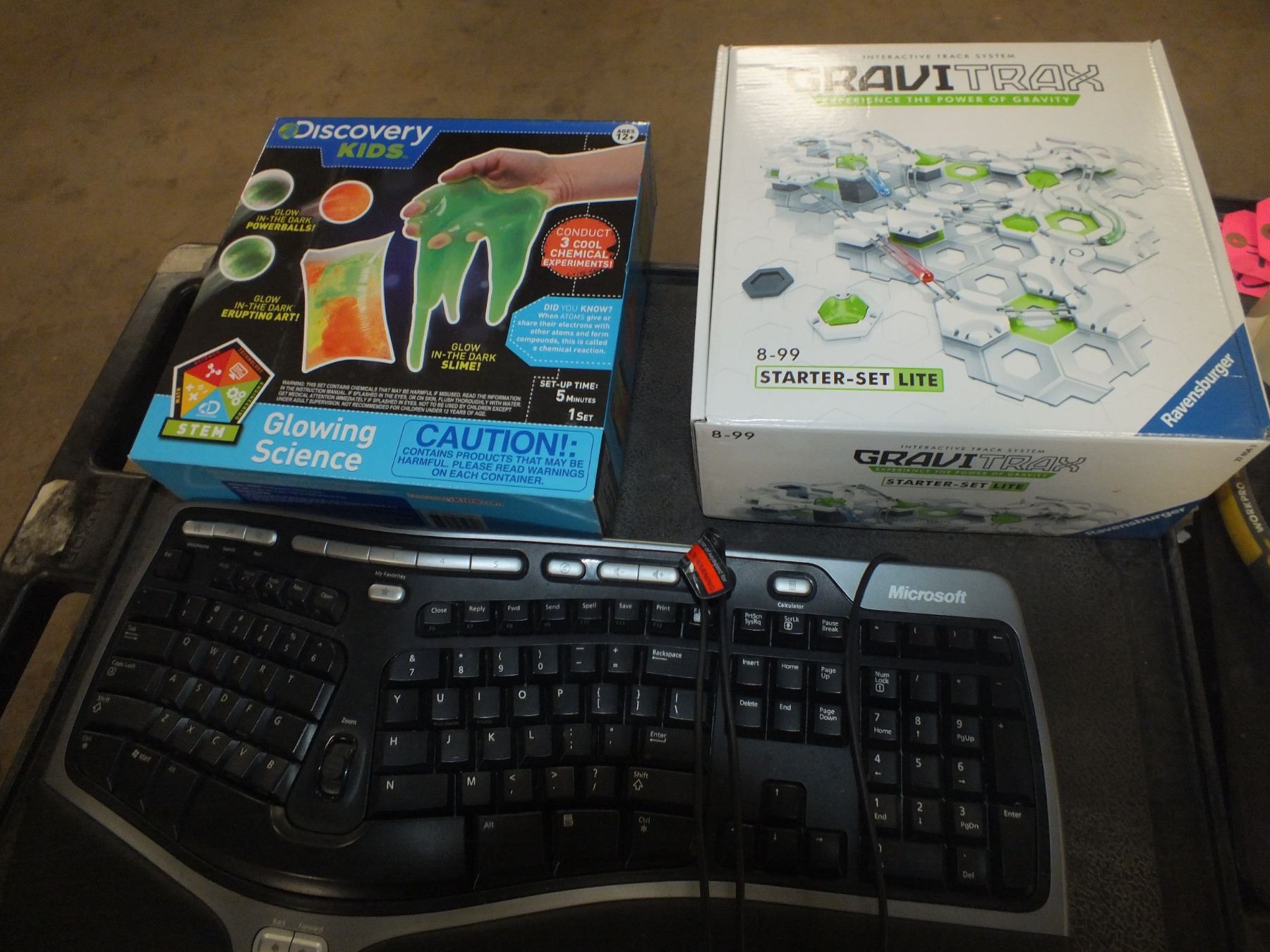 you get discovery science kit, gravity Trax starter kit, and a usb keyboard...new/used