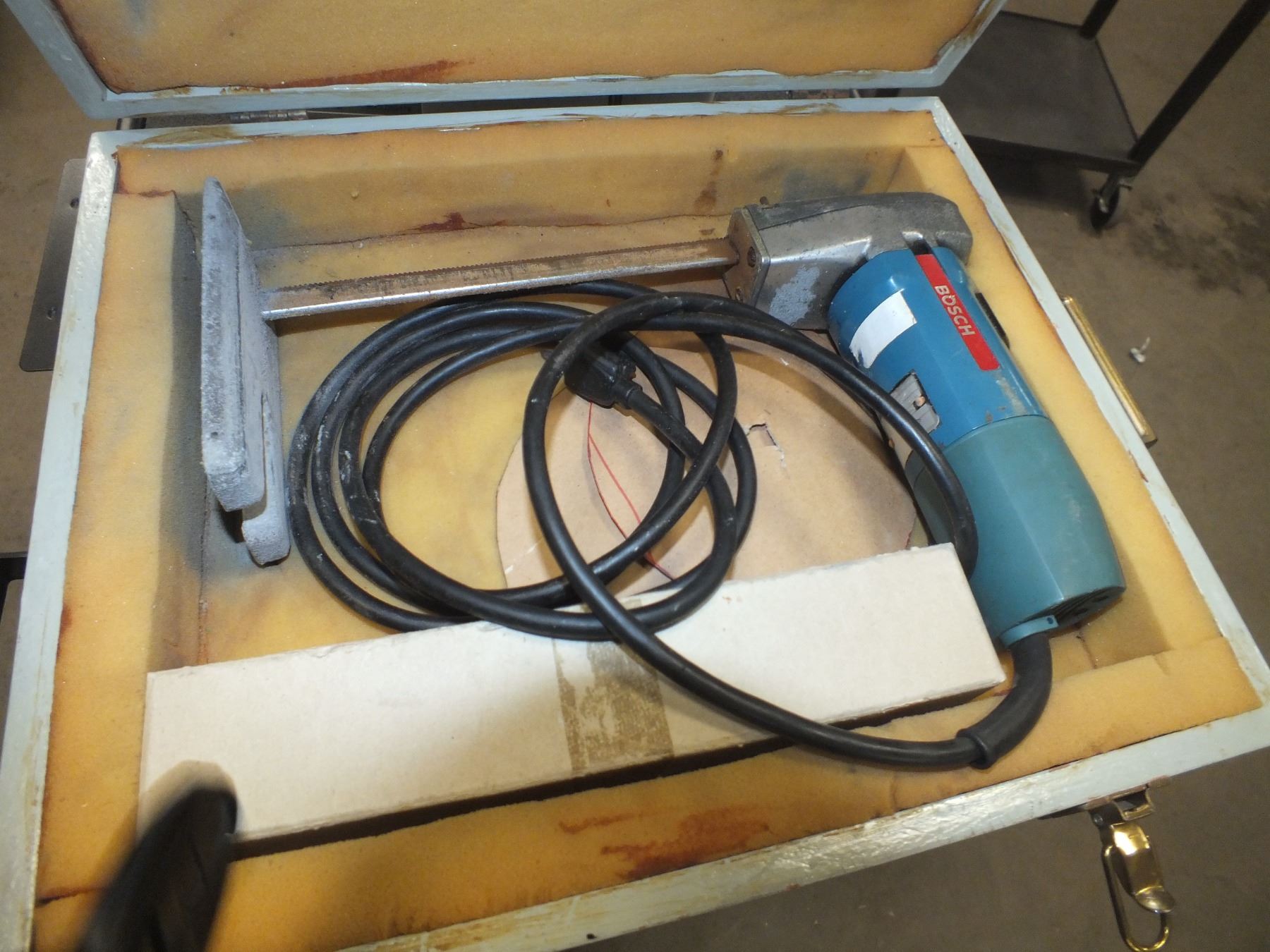you get Bosch saw, Jaki serger sewing machine no cord, and a black cart on wheels...used
