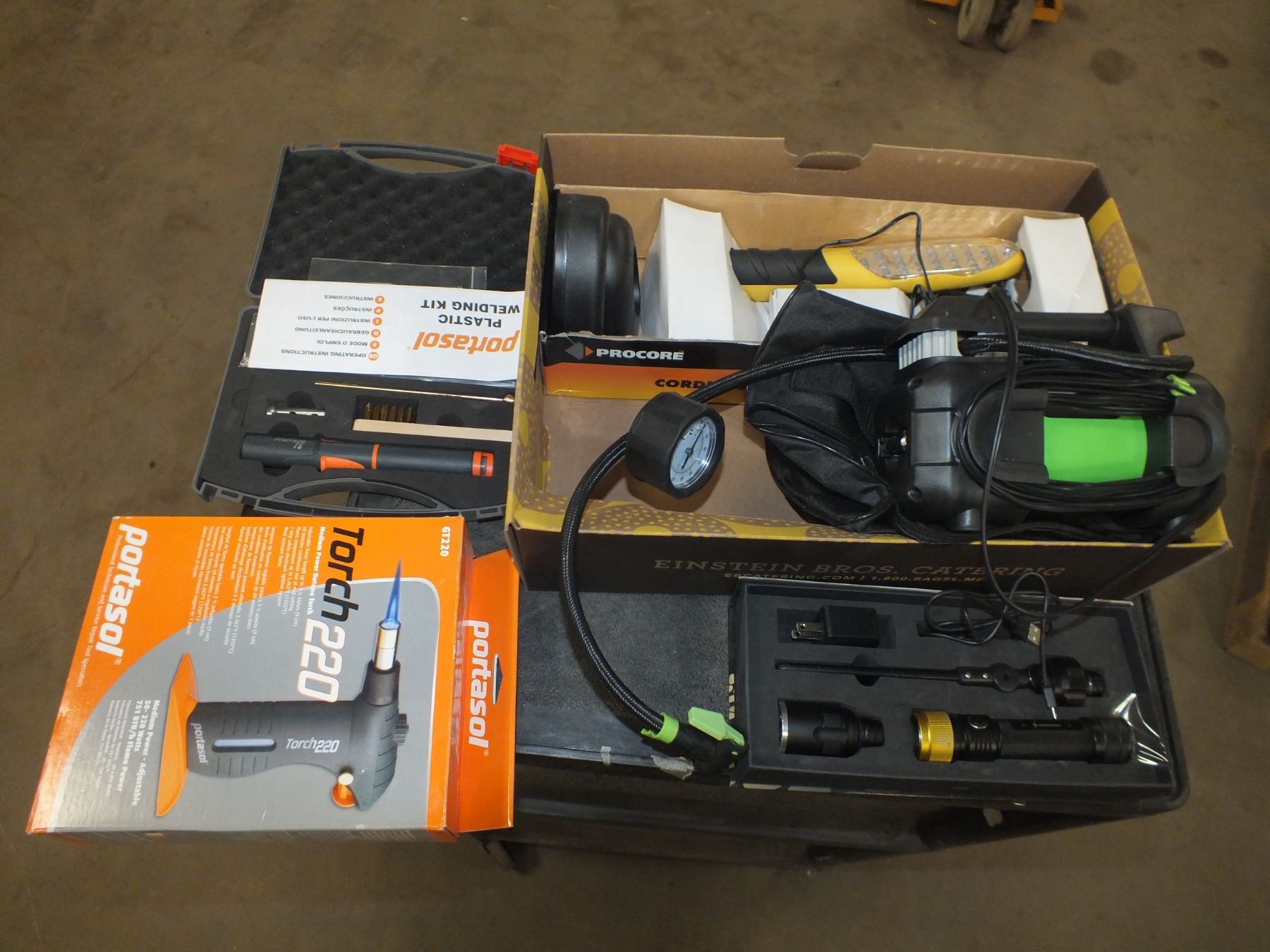 you get it all for one money, plastic welding kit, small job light, small air pump, small torch and a flashlight...store returns...
