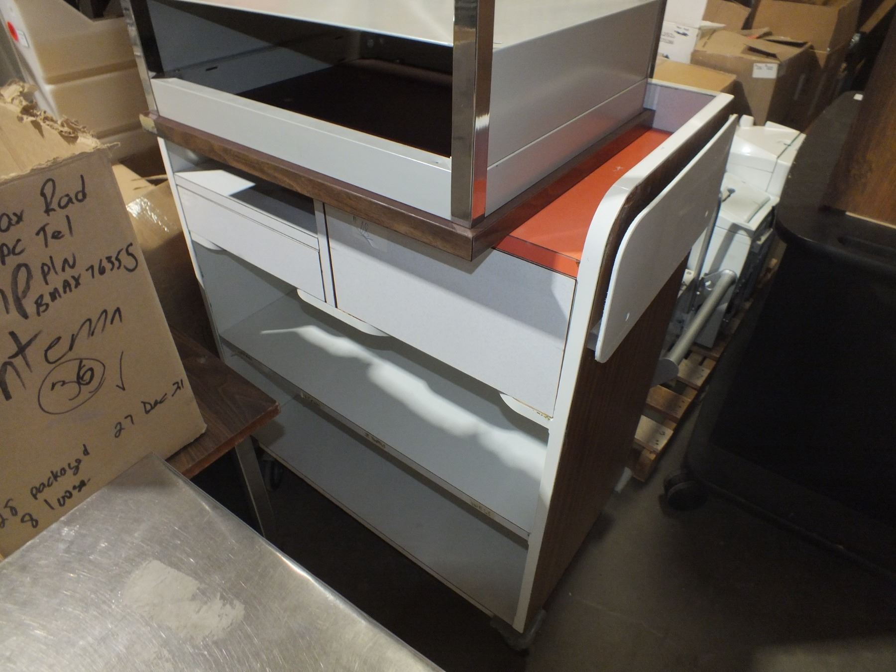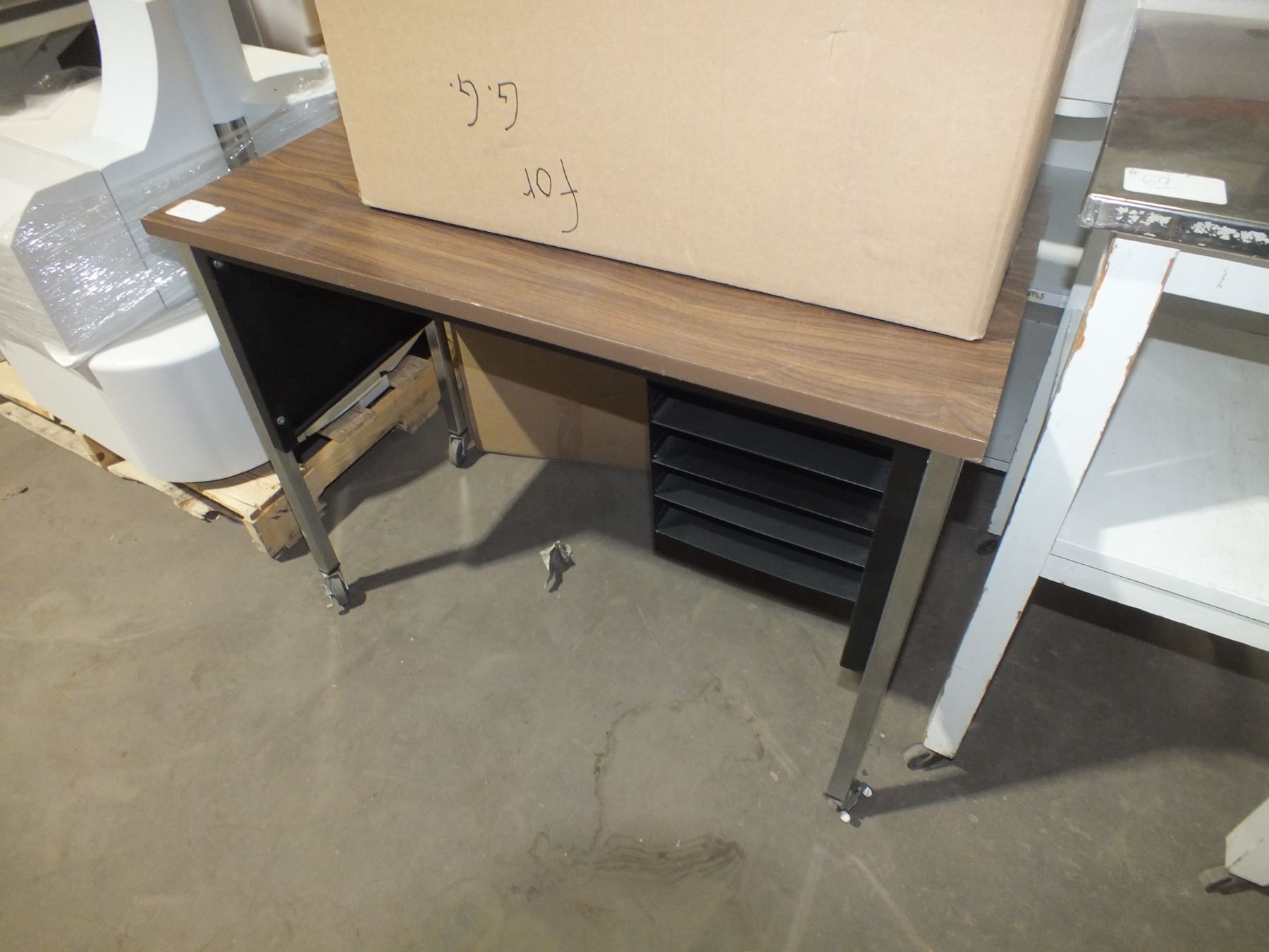 you get 2 small desks, 1 storage cart on wheels, 1 box of Hi- frequency Atenas...new/used