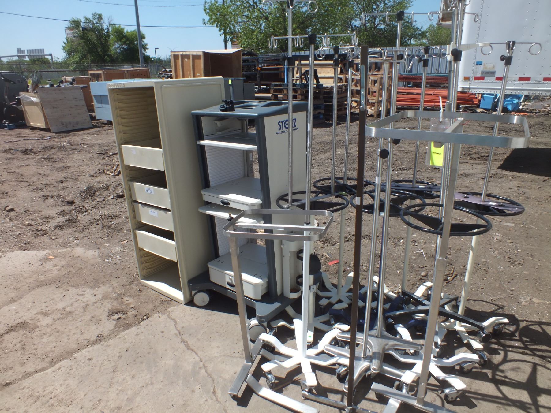 you get it all for one money, 10 iv poles, 2 tray carts, 1 coat tree, 1 medical storage carts, 1 plastic storage shelf...used