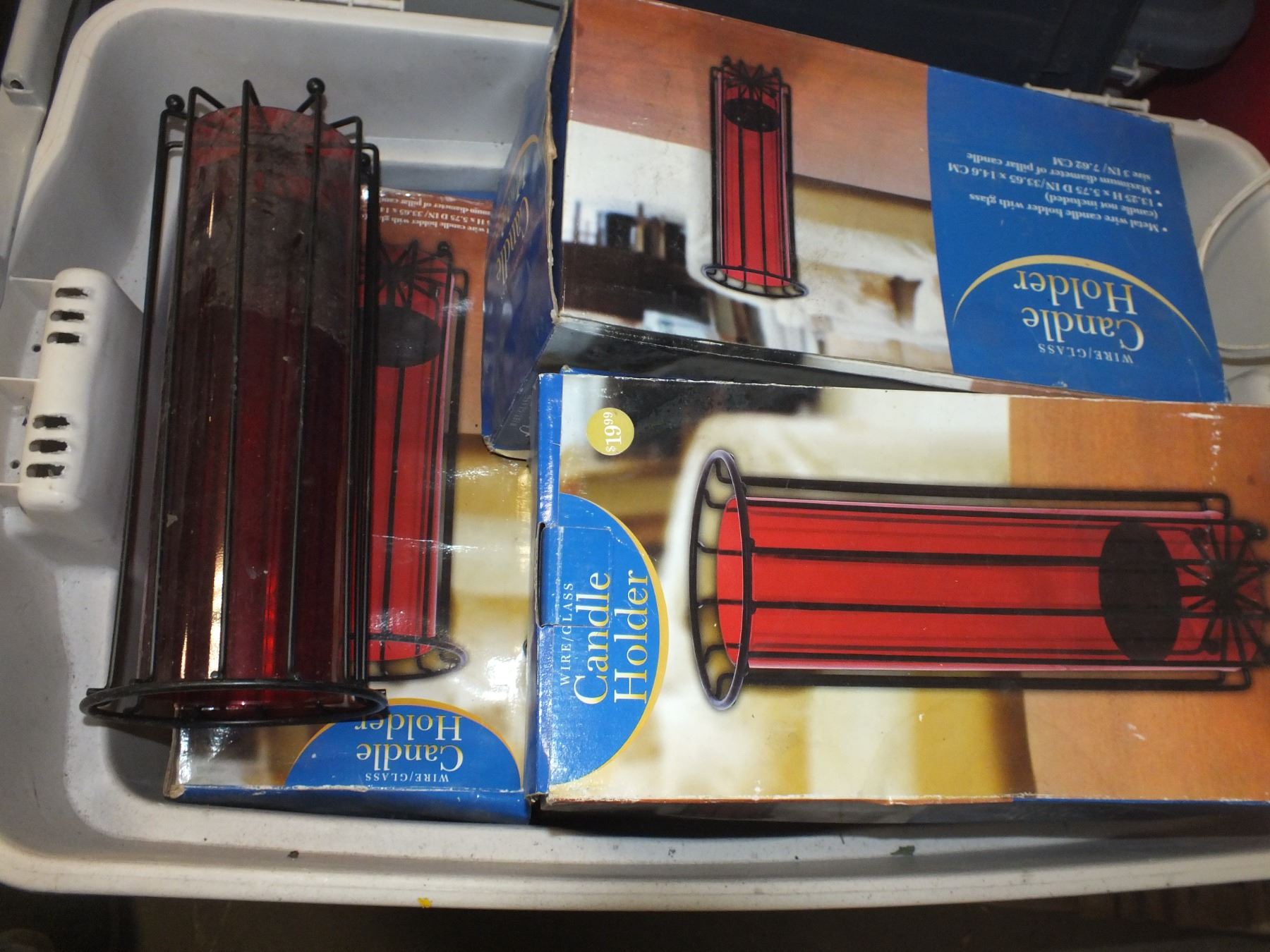 you get 6 candle holders, hummingbird feeder small meat slicer and a iron....used