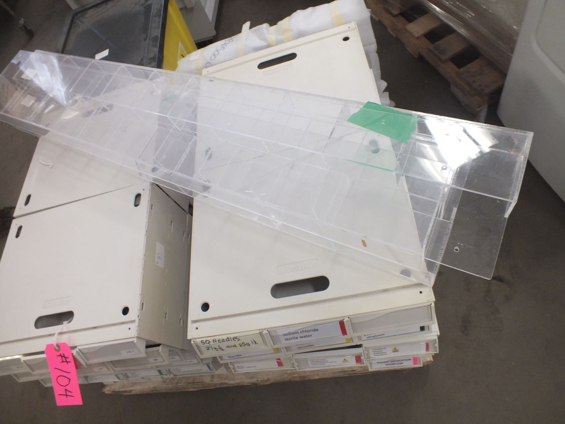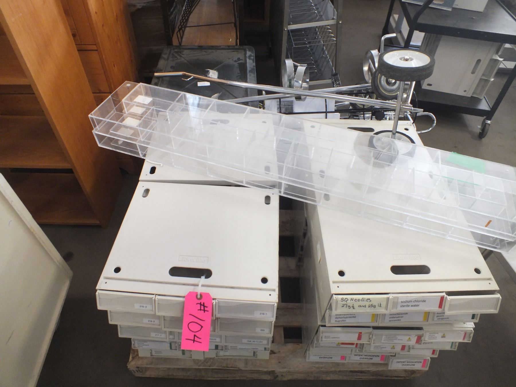 you get oxygen tank holders, banks of plastic drawers, 2 pamphlet holders...used
