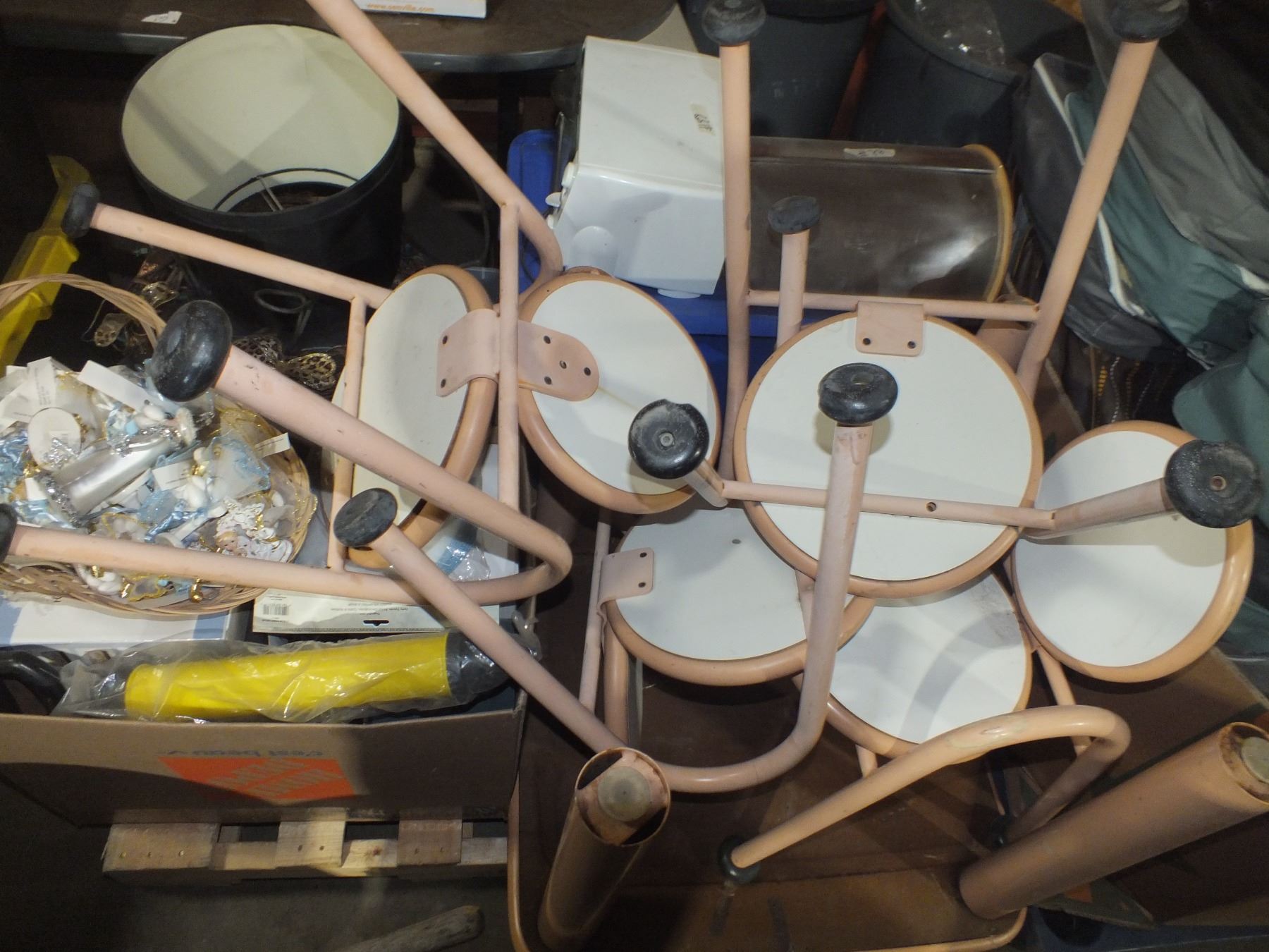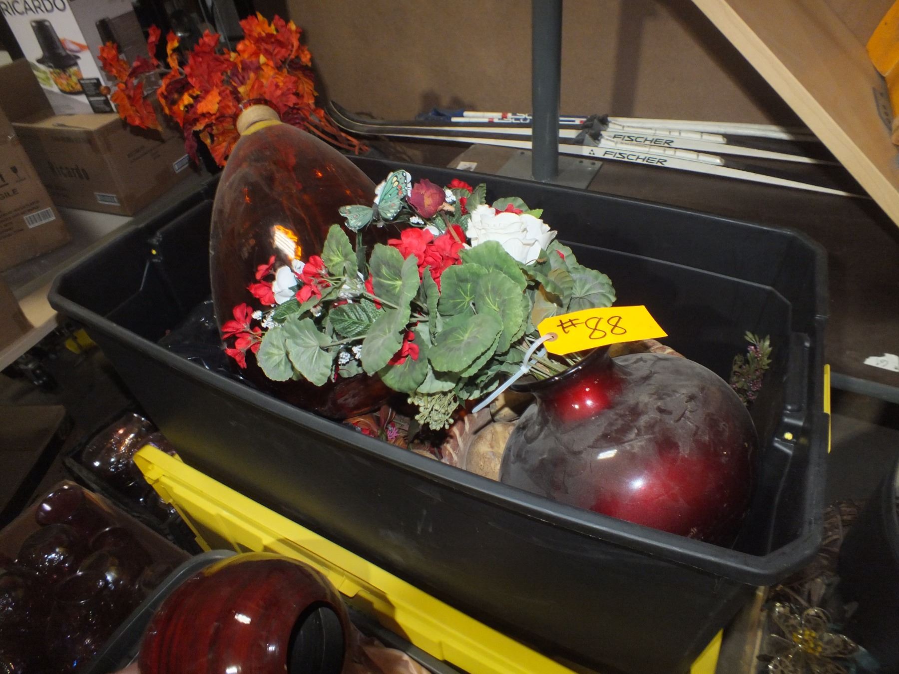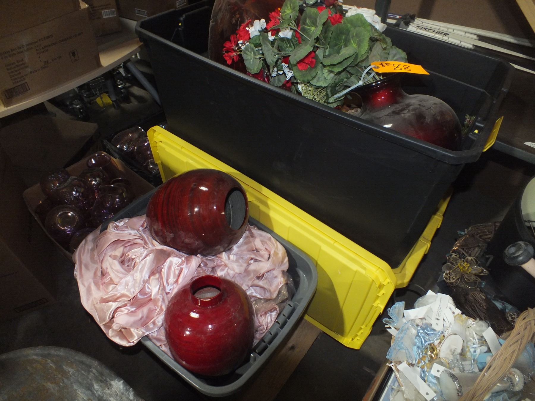 you get it all for one money, vase's, wedding deco, toaster oven, bread box, Christmas deco, kids table, and fake flowers, yellow totes not included...used