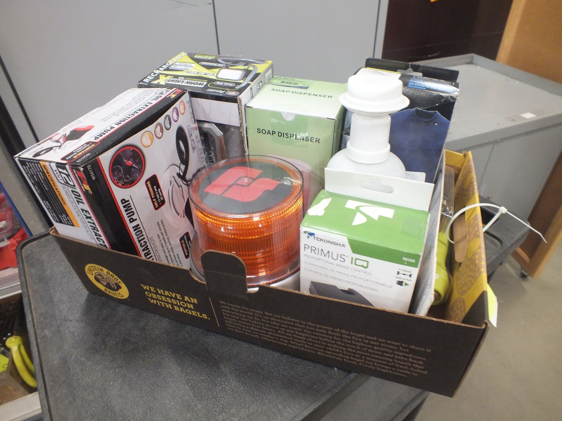 you get it all for one money, beacon light, proportional brake control, flashlight, soap dispenser, 12 volt oil extraction pump, small work light, and eyewash solution...used