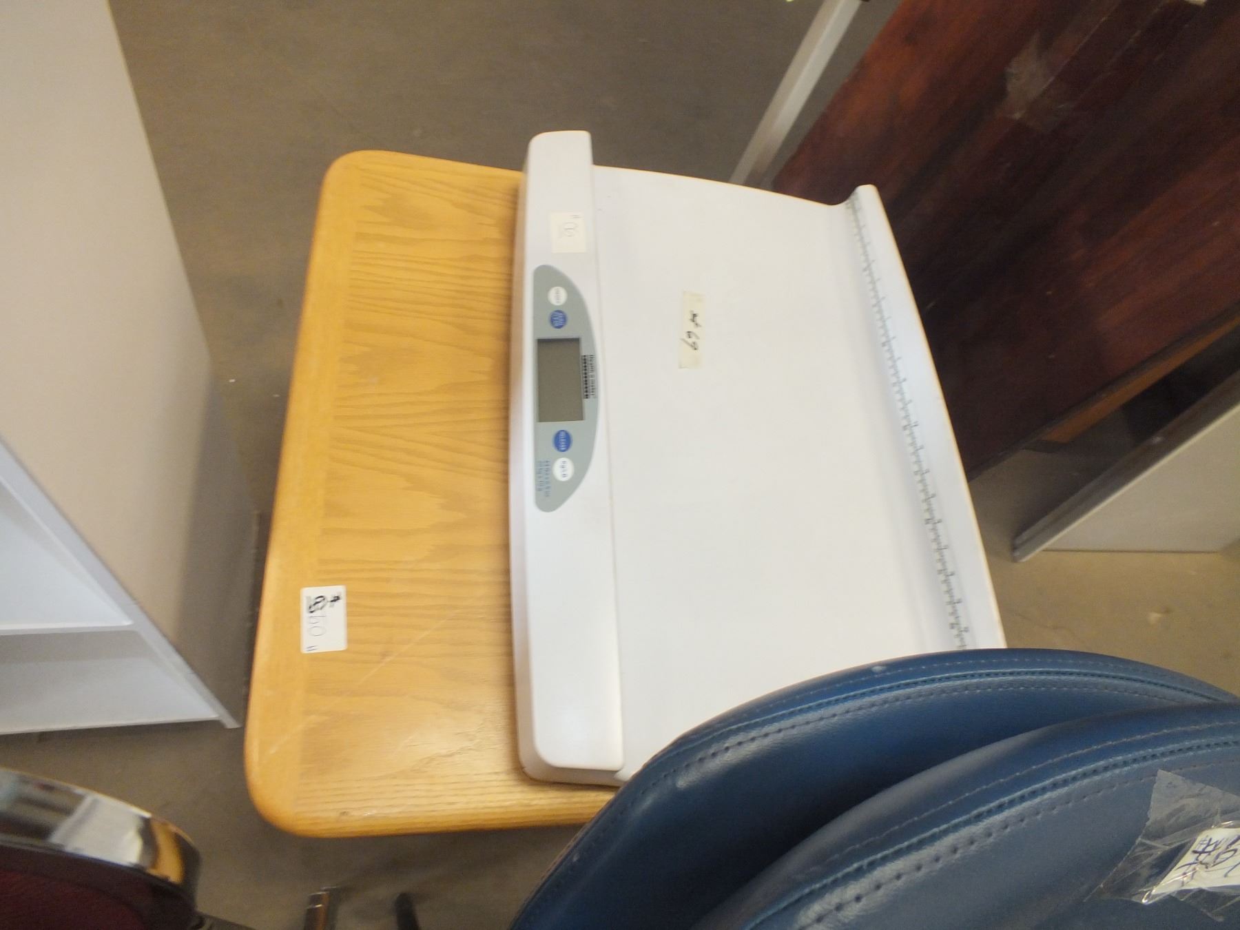 4you get 5 stacking chairs, 1 wooden end table, wooden shelf and a baby scale...used