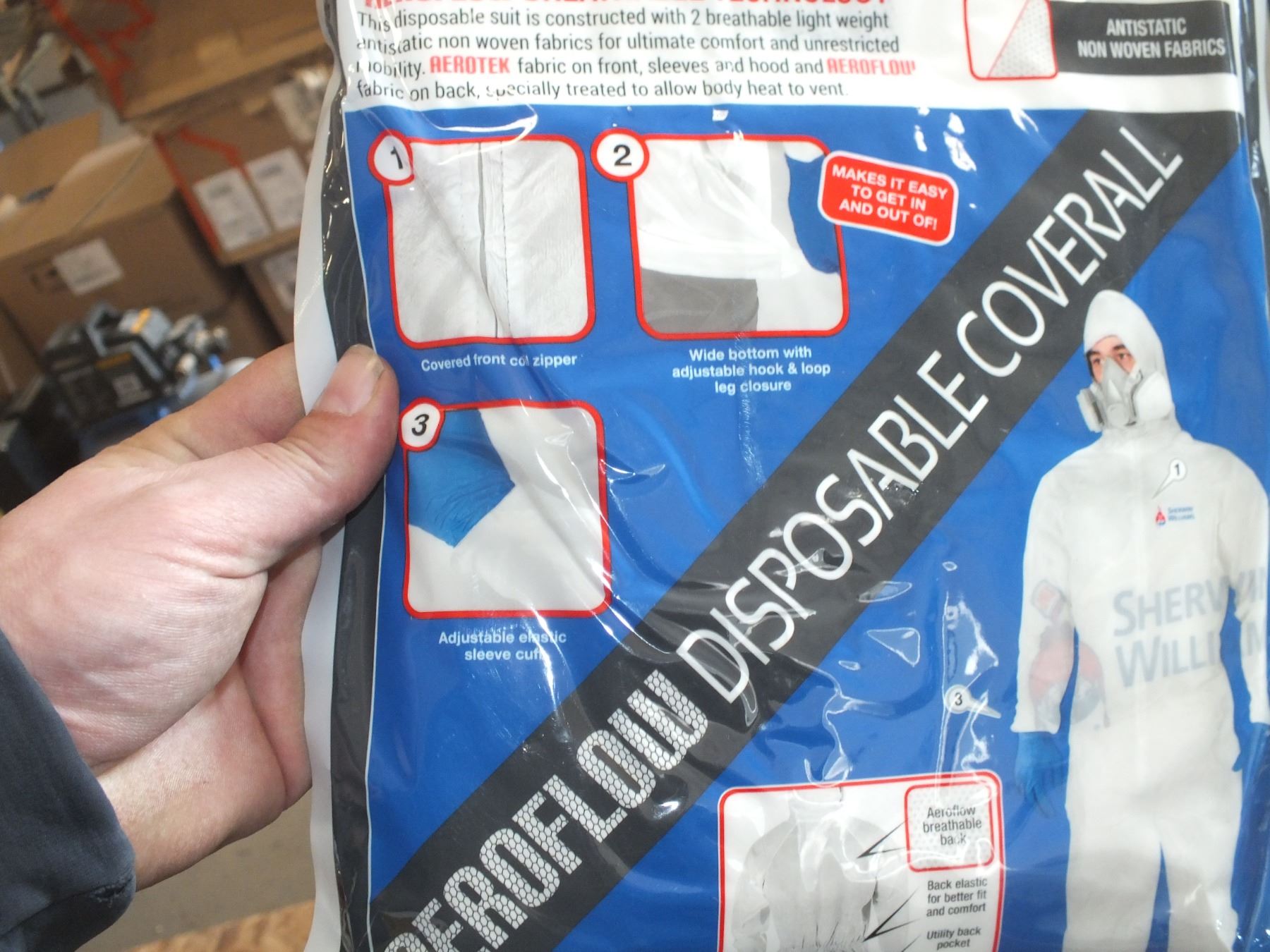 you get box of bib aprons, disposable coveralls and rain gear...like new