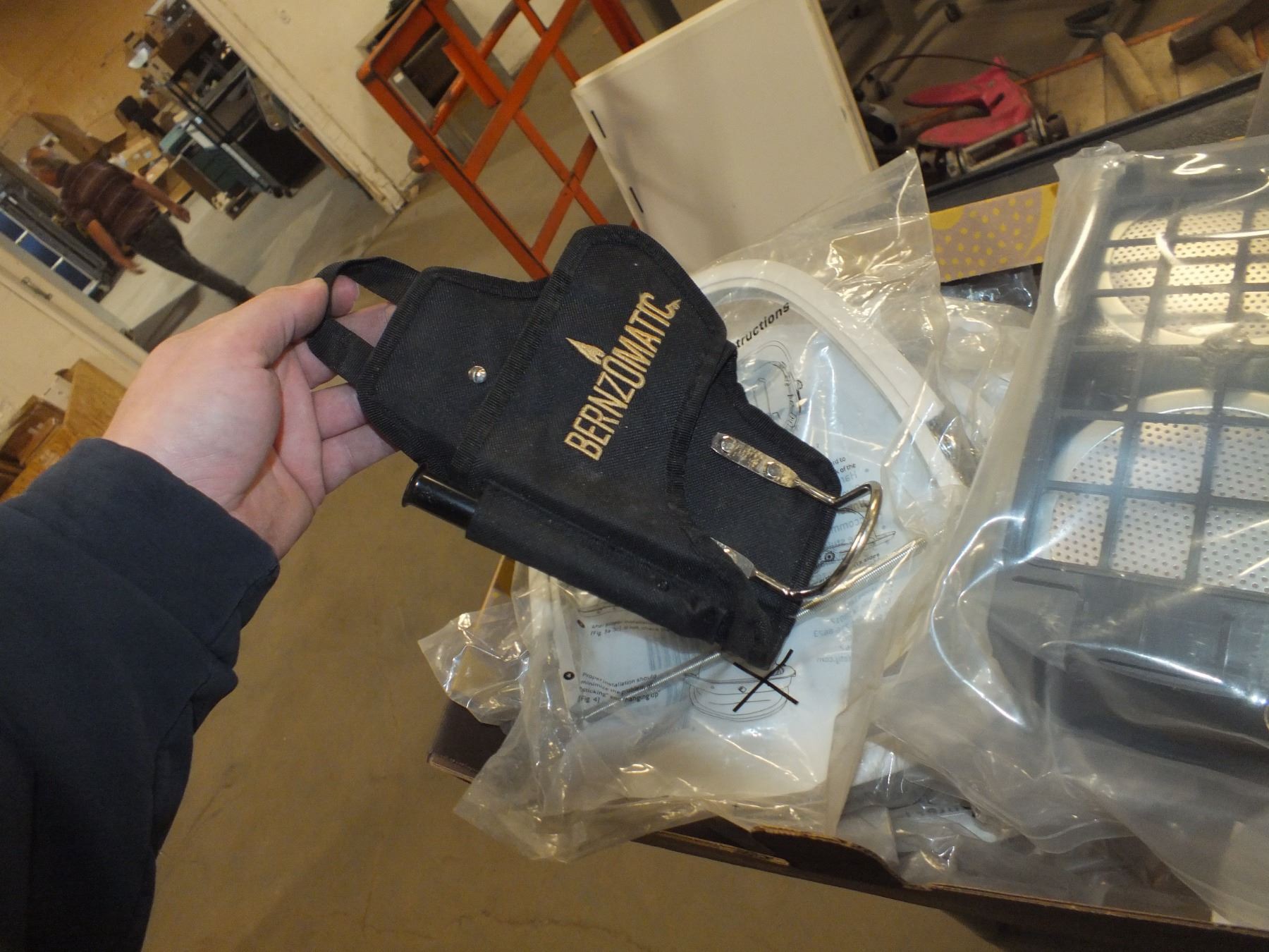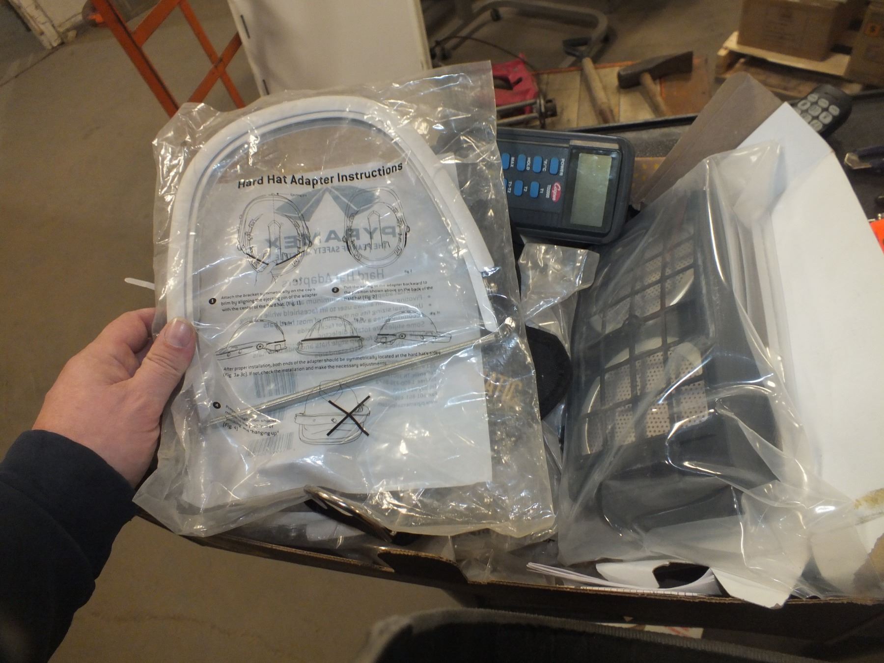 you get digital thermometer, 3m respirator cartridge, small tool pouch, and hard hat adapters...new/used