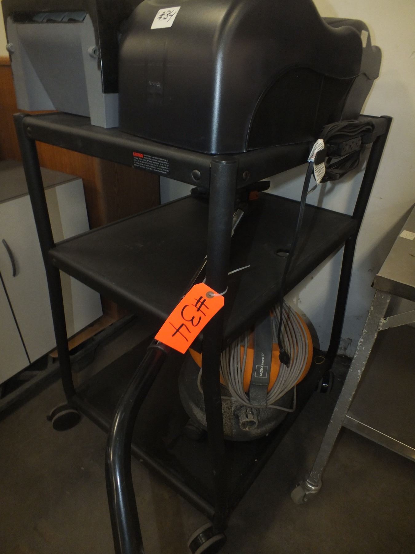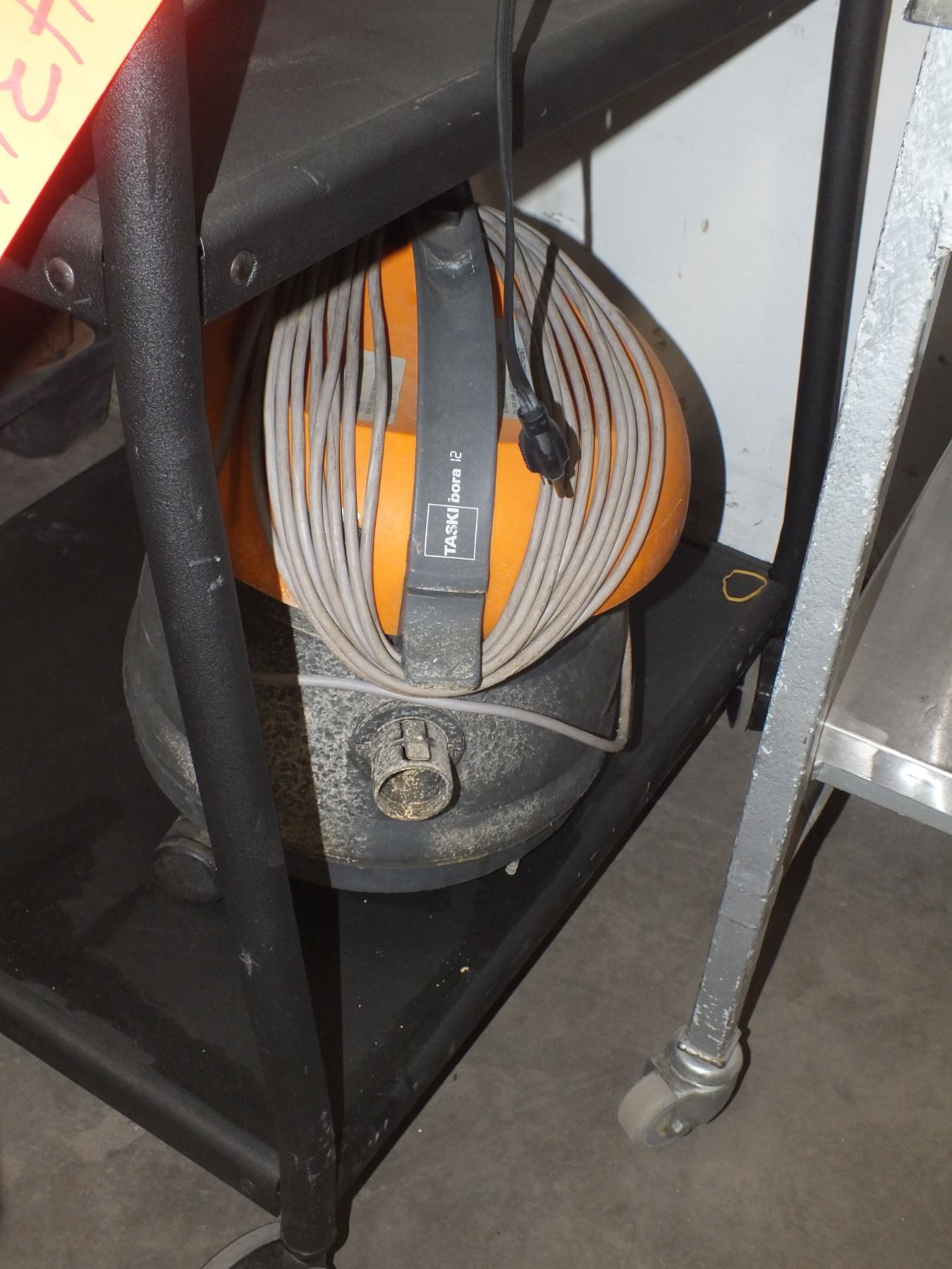 you get a black cart on wheels, 1 vacuum with wand, no hose, 3 paper towel dispensers...sold as is / where is...used