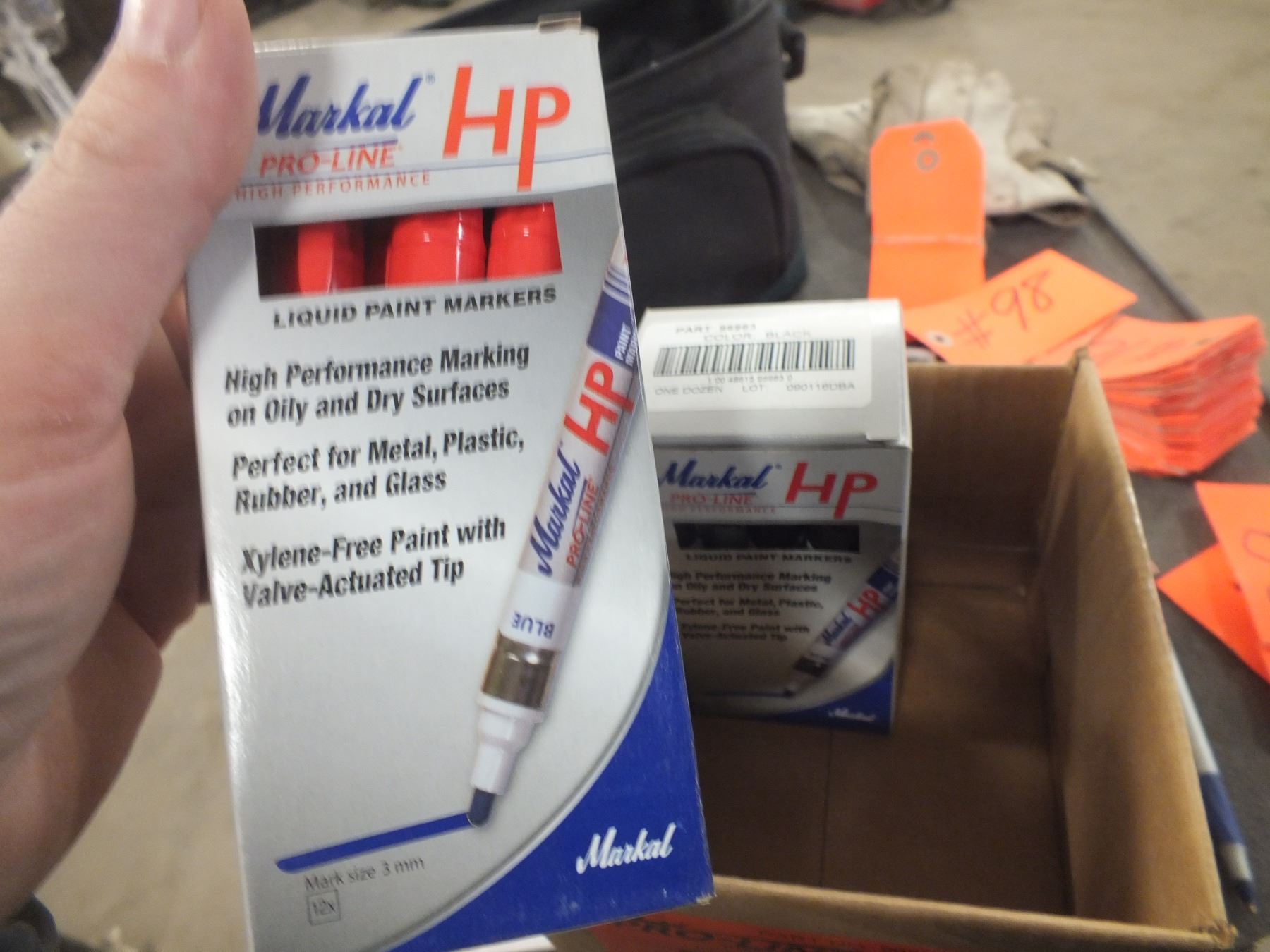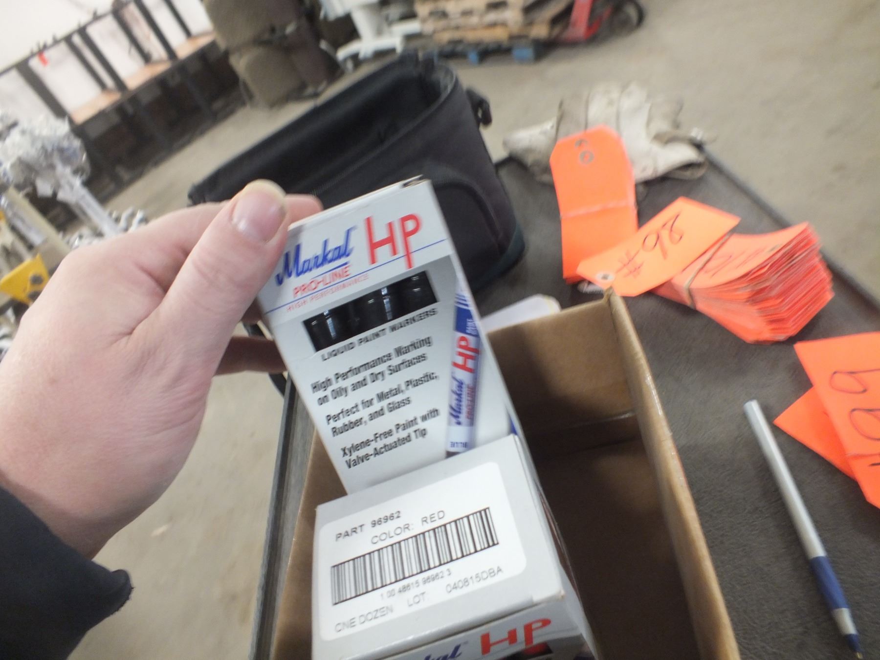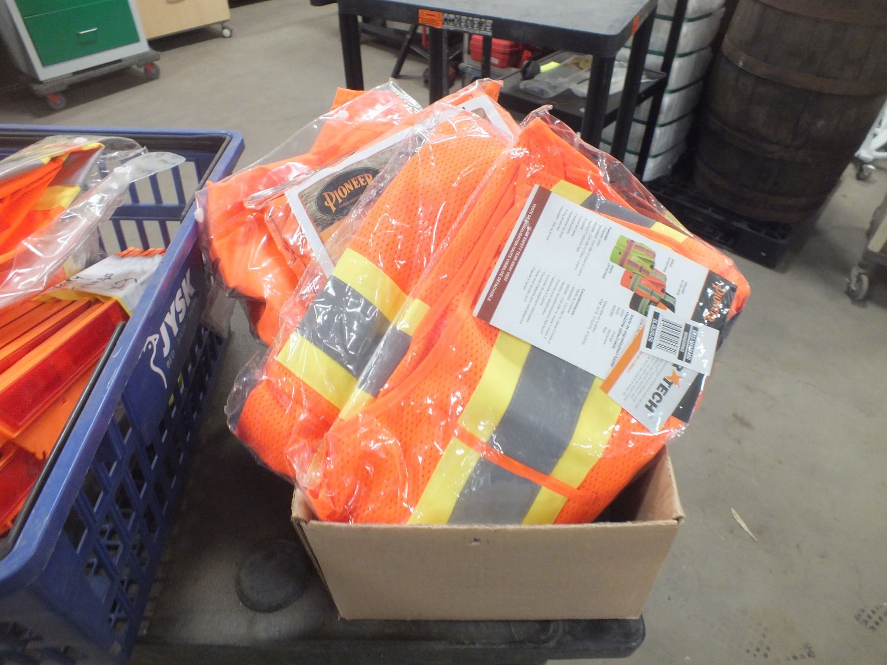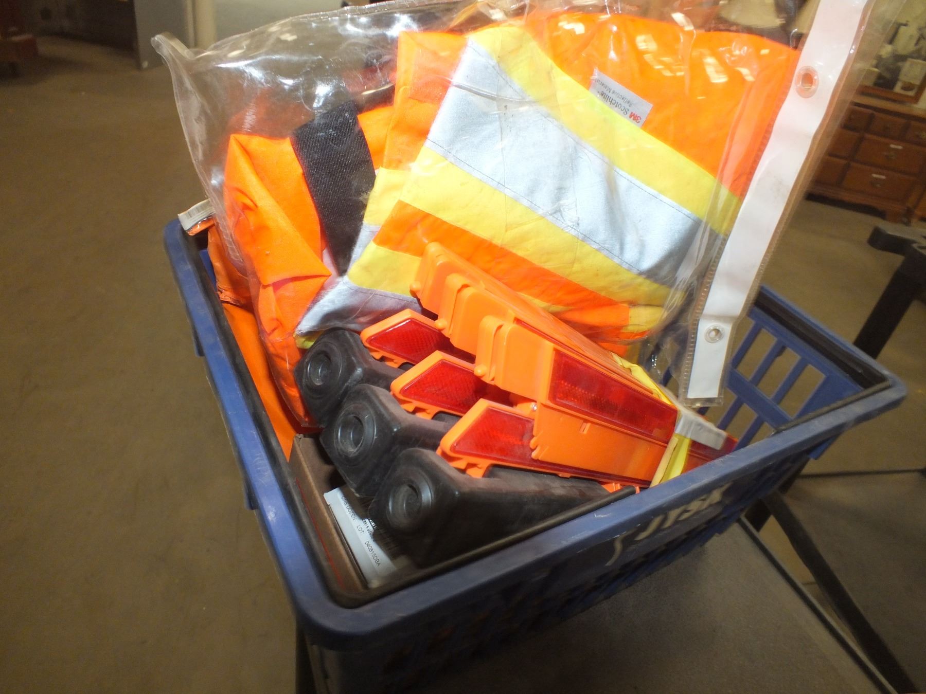 you get 3 road side triangles, 2xl bib, xl rain suit, 2xl safety vests, xl bib and assorted paint pens...like new...sold as is / where is