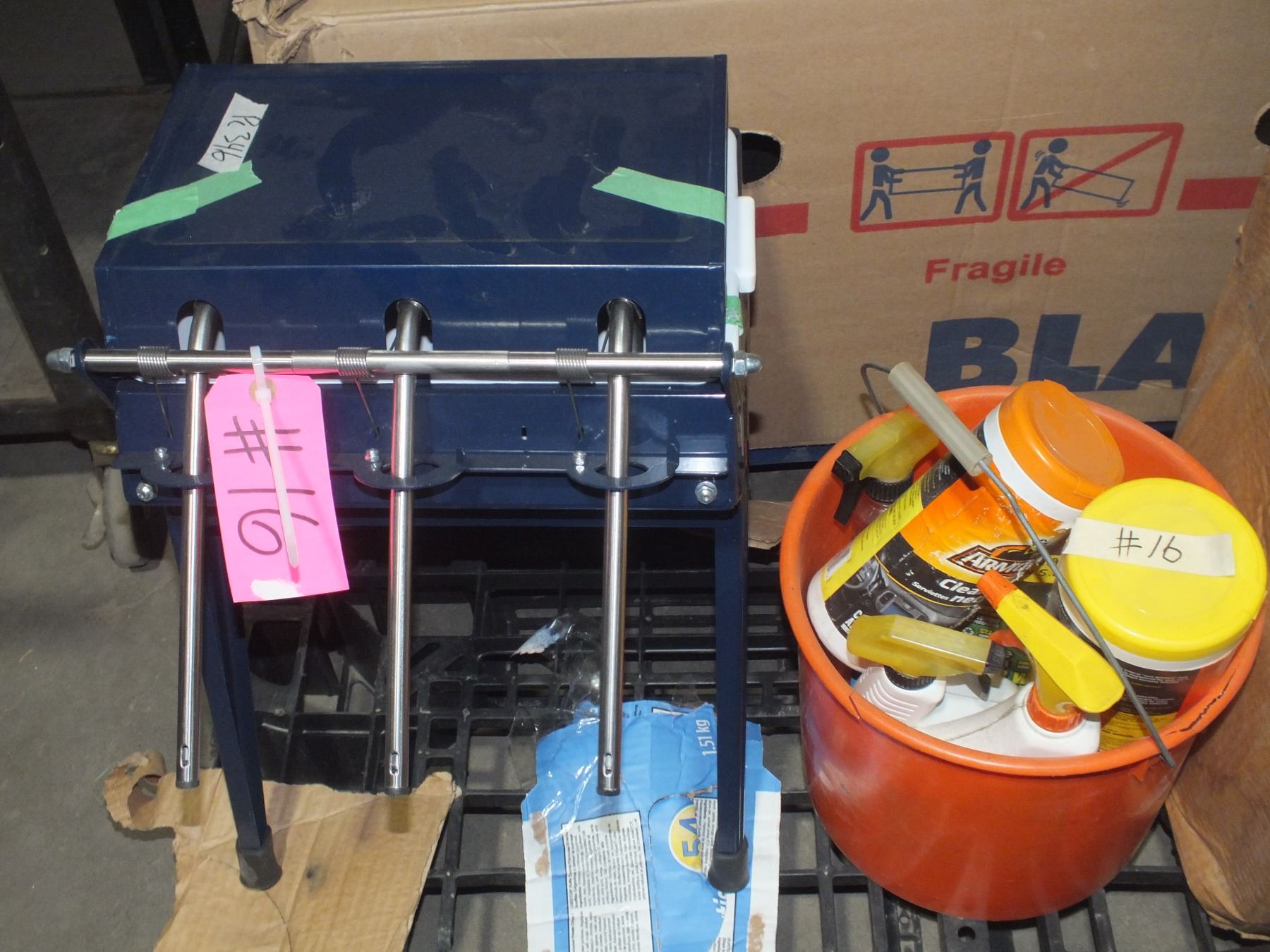 you get a paint can filler, and a bucket of car cleaning supplies...sold as is / where is...used