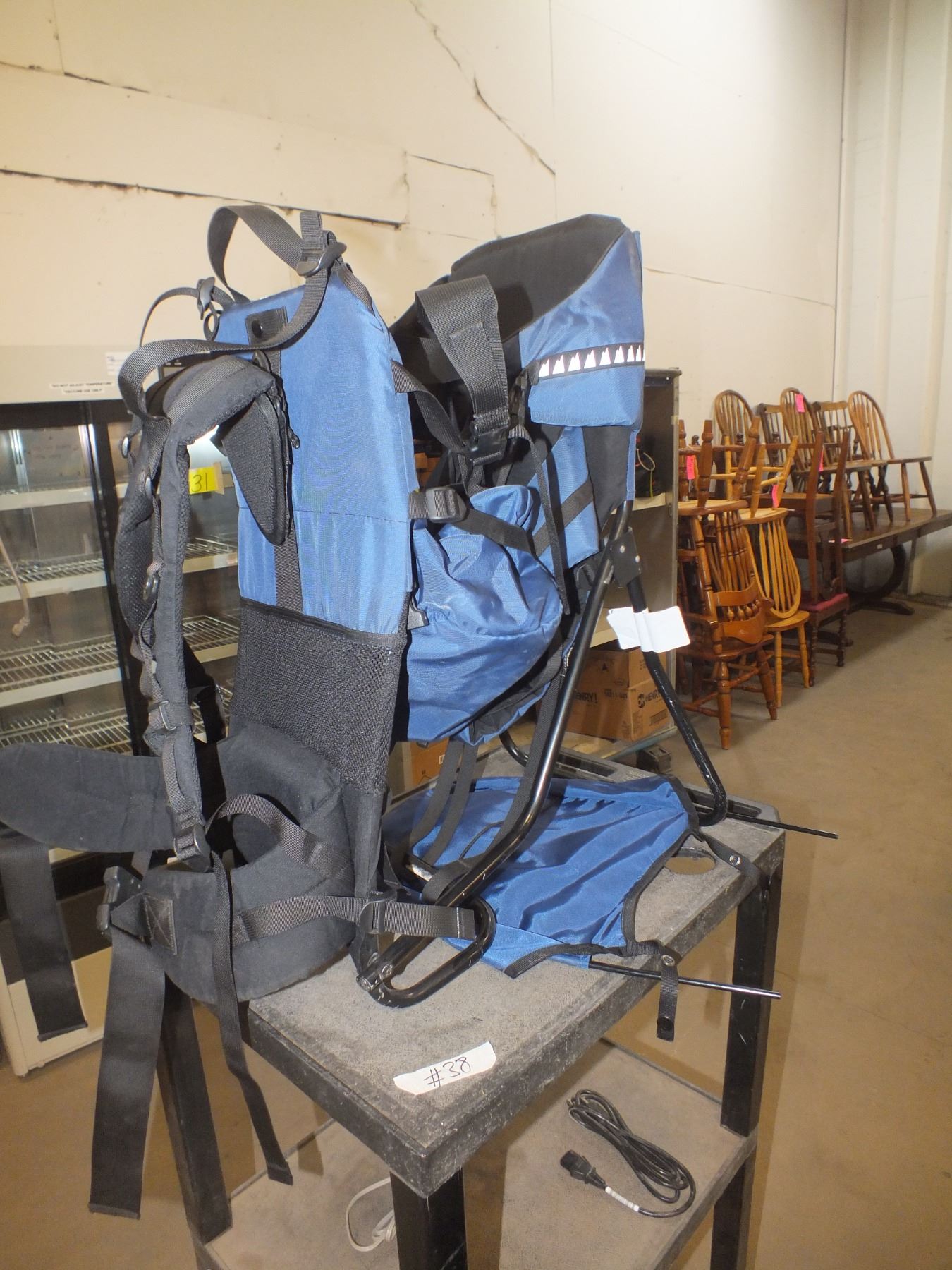 you get a baby carrier back pack, 34t ski pants and a small suit case...sold as is / where is...used