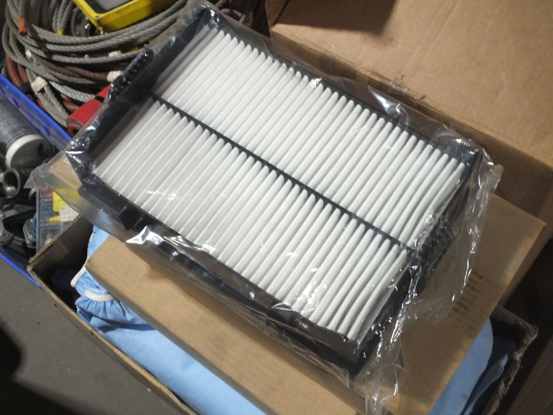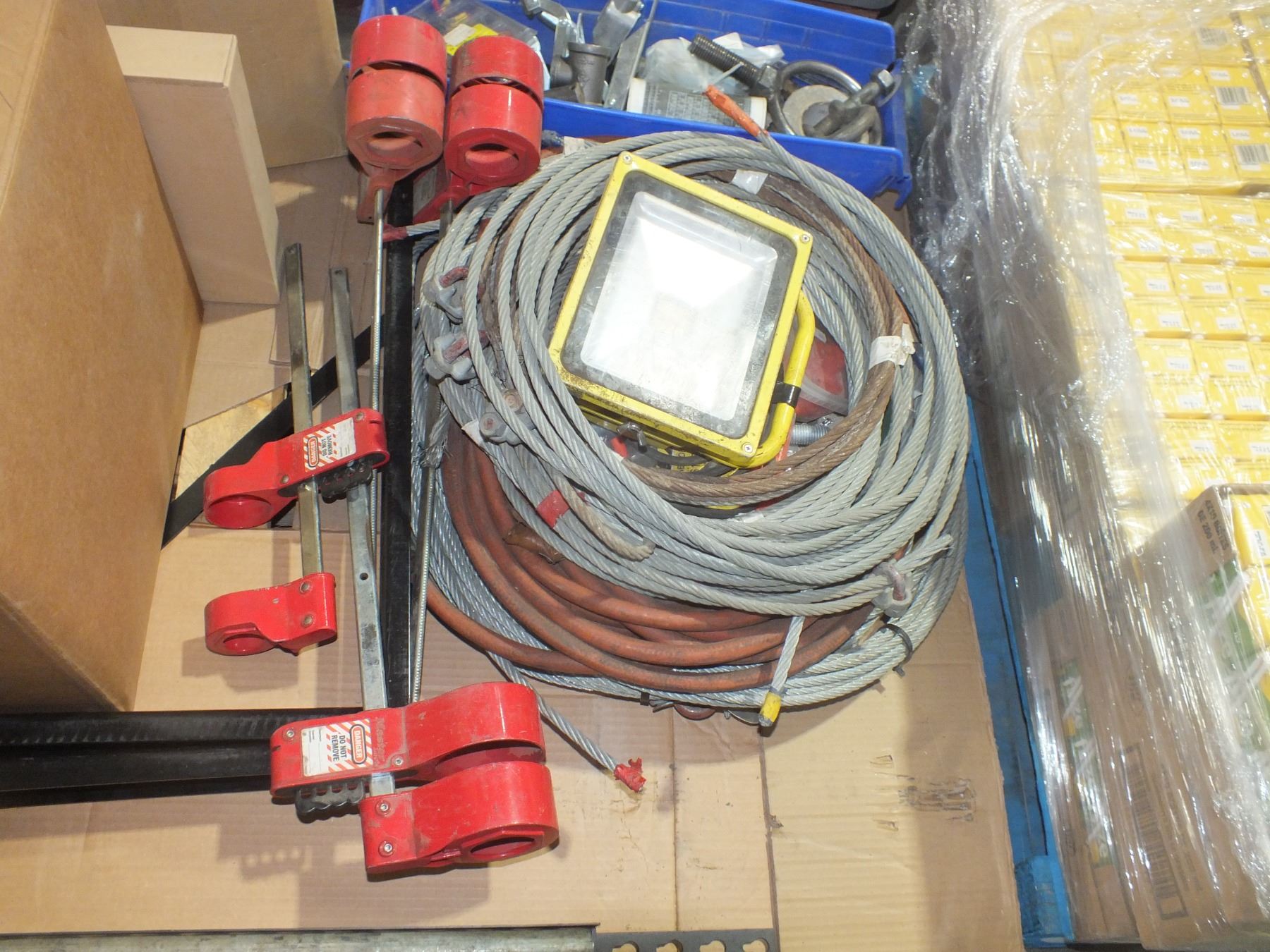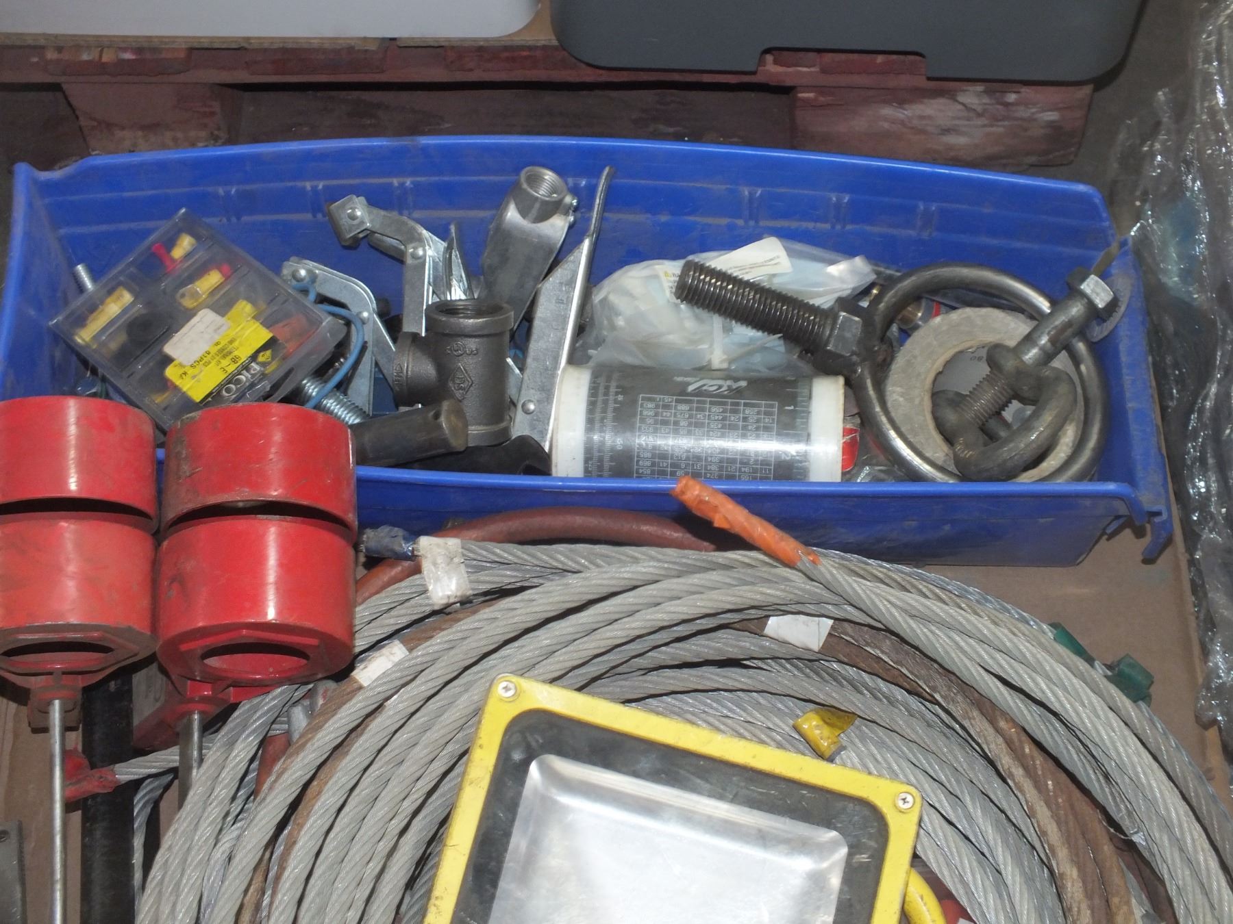 you get steel cable, job light, disposable coveralls, air hose, clamps, air filters, oil jugs, and metal hardware...sold as is / where is...used