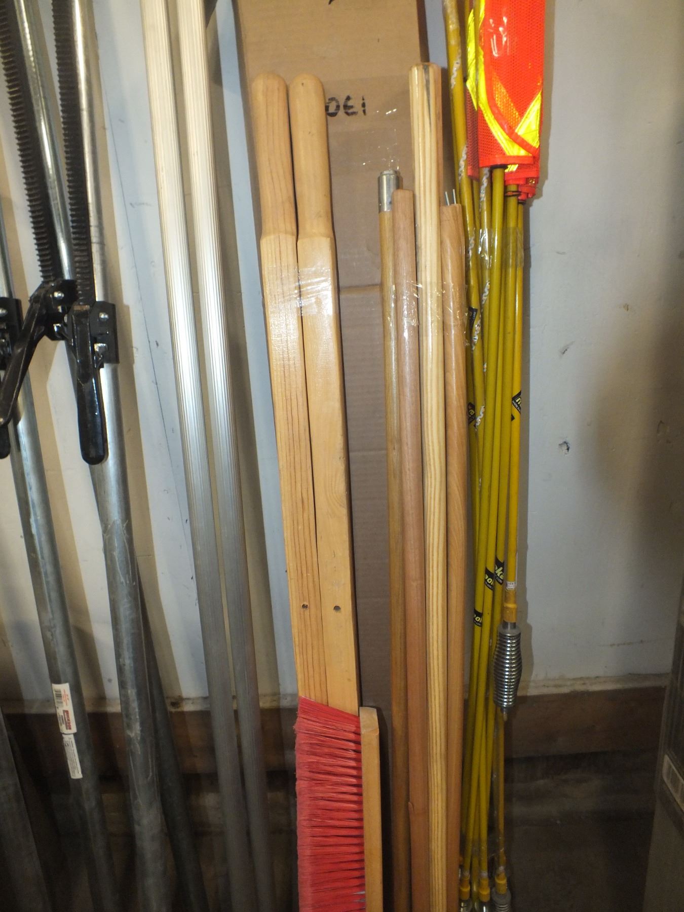 you get broom heads, wheel barrow handles, broom and mop handles...Like new...sold as is / where is