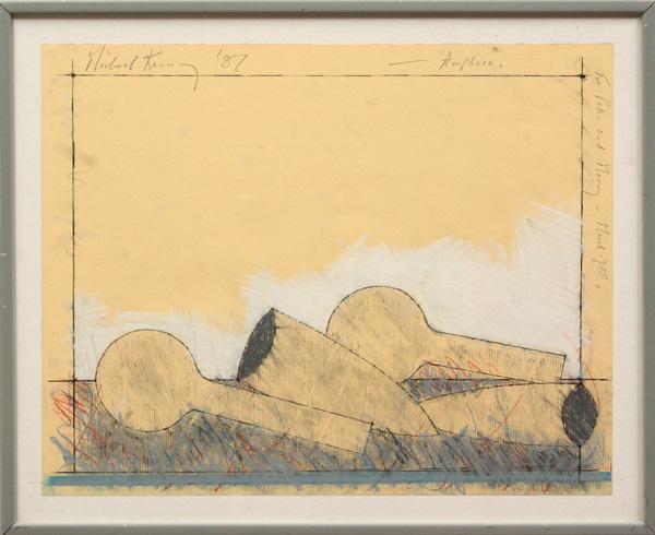 Framed mixed media on paper, ''Amphora,'' 1987, by Michael Kenny (British, 1941-1999), signed and dated ''Michael Kenny '87'' upper left, sight: 14.5''h x 18''w, overall: 17''h x 21''w