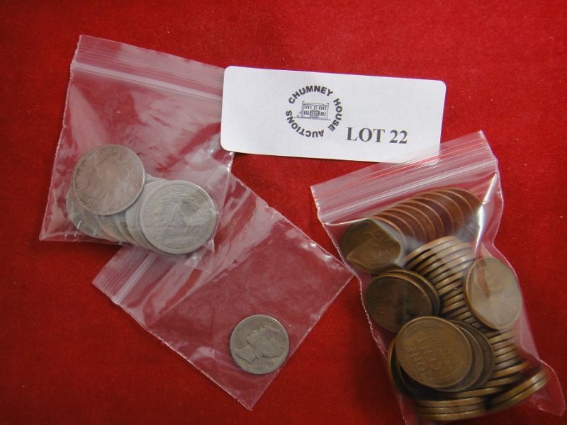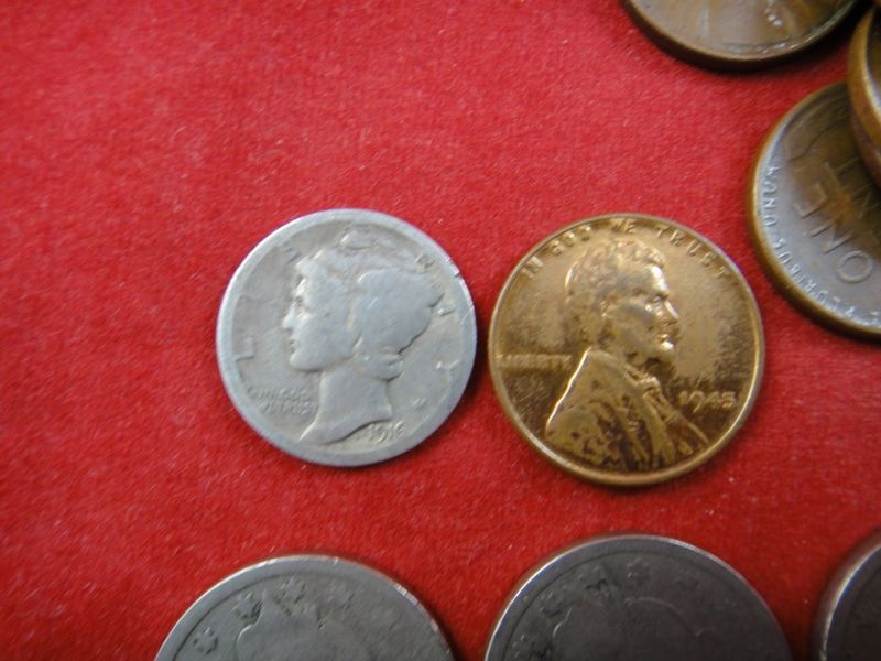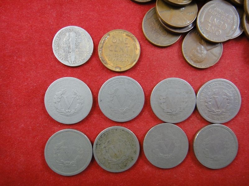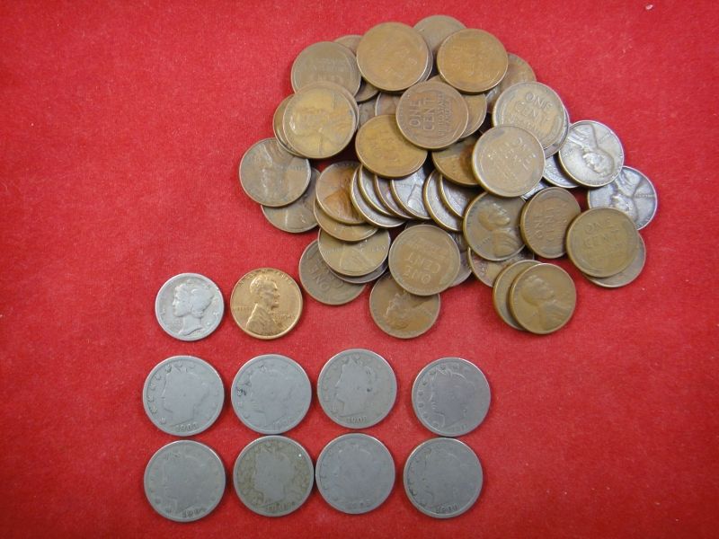 Includes Wheat Pennies, V Nickels and a 1916 Mercury Dime.