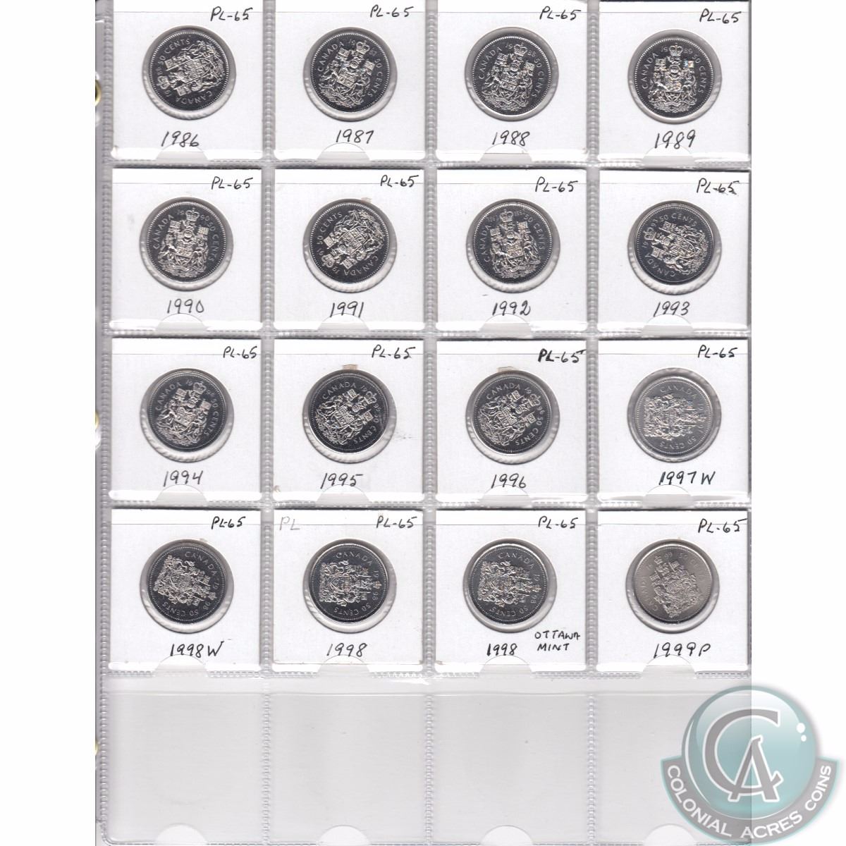Mixed Page of 16x Canada Proof Like 50-cent Dated 1986-1999. 16pcs