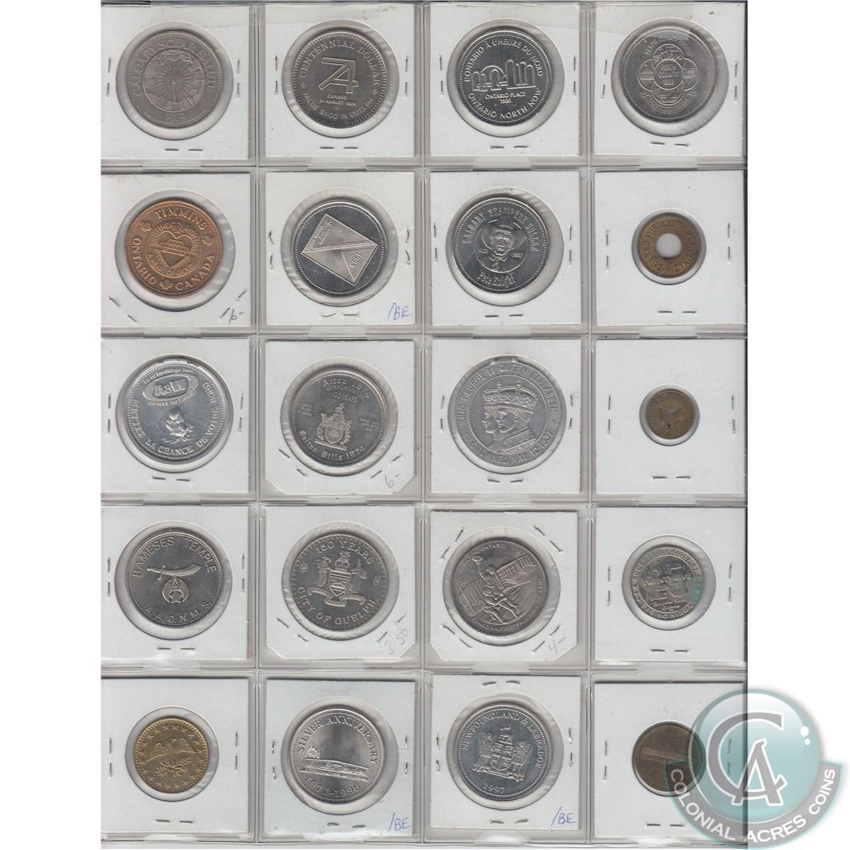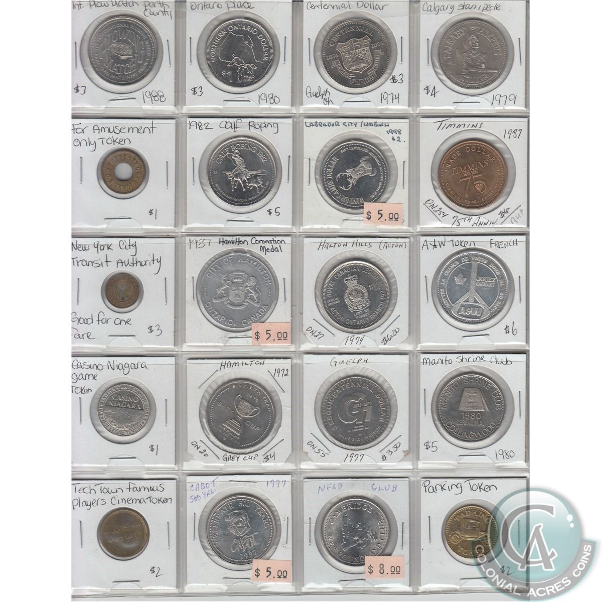 Mixed Page of 20 x Various Canadian Trade Dollars and Amusement Tokens. Sold as is, No Returns.