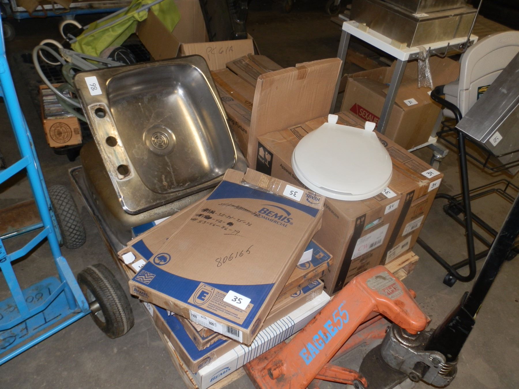 You get the whole pallet for one money...Two stainless steel sinks, toilet tanks, toilet seat lids ect...