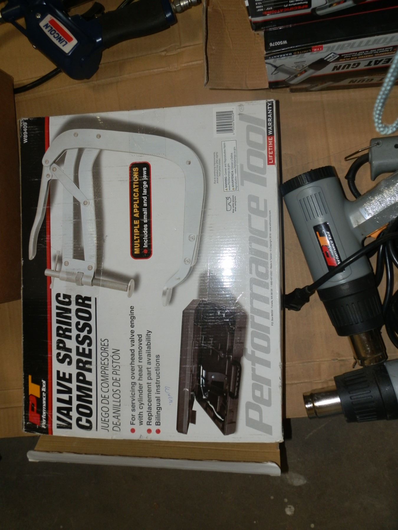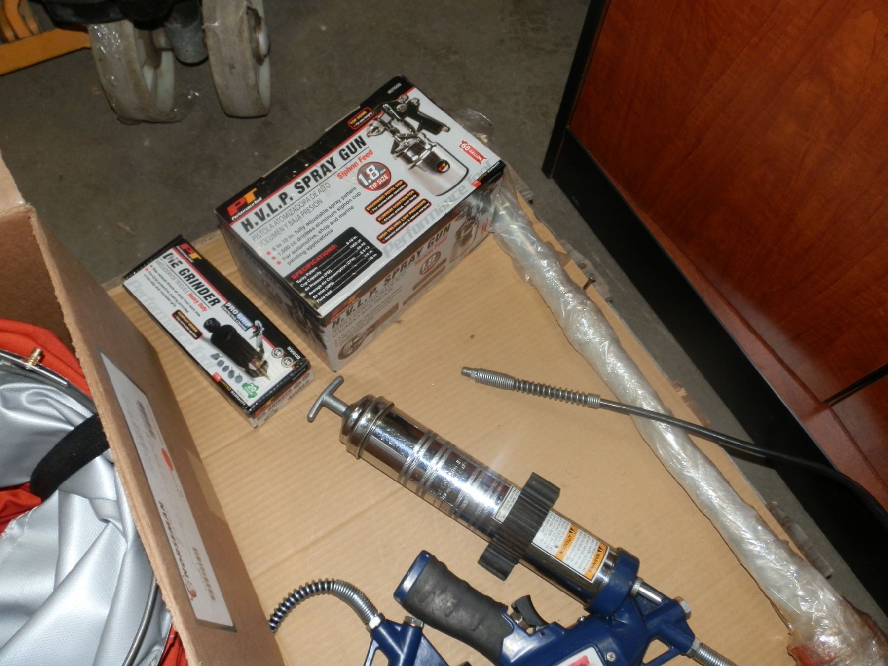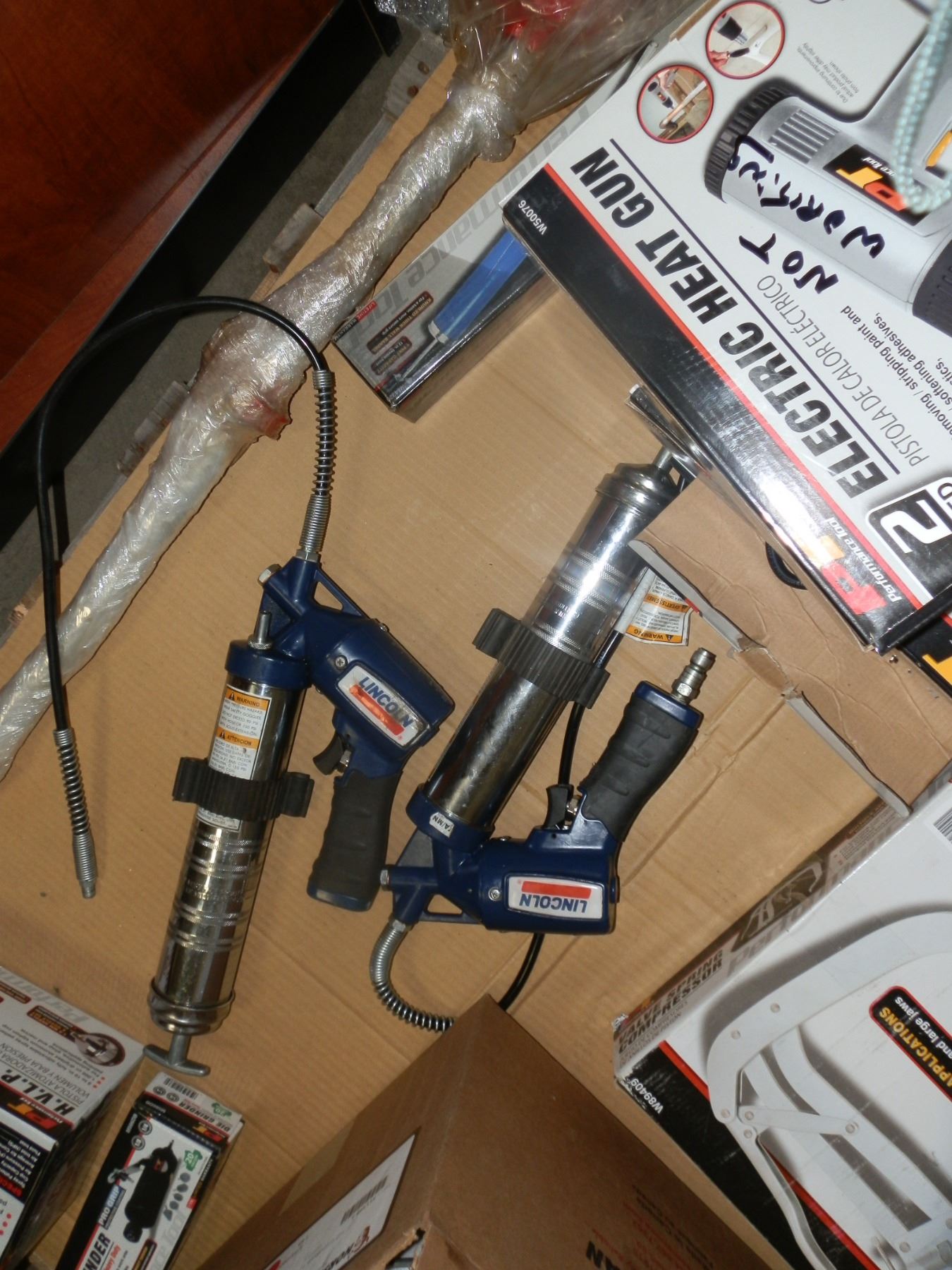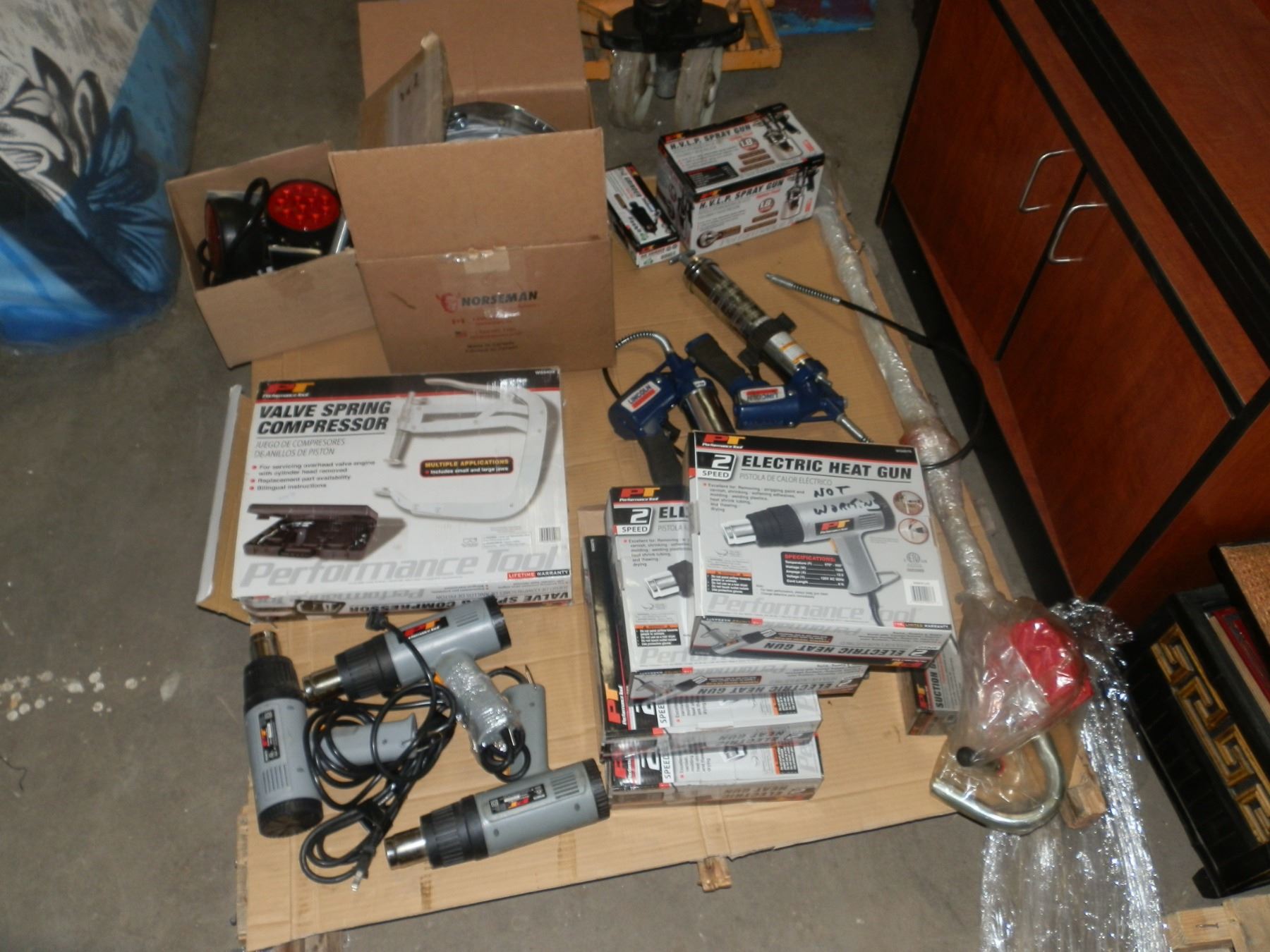 you get it all for one money, spray gun, grease guns 7 heat guns, heat guns do not work, trailers.... lights, barrel pump, valve spring compressor, step ladder has some damage, could be a easy fix