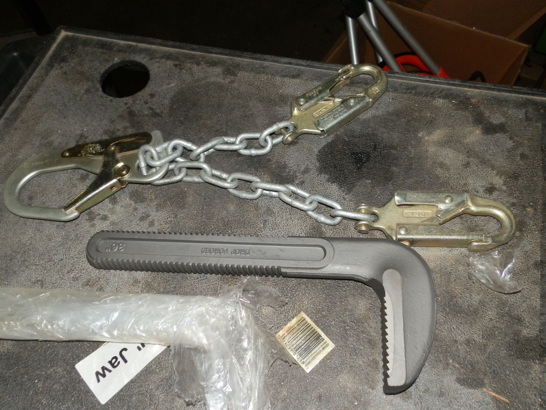 you get it all for one money, pipe wrenches tops, chain and rubbermaid bin...used and new