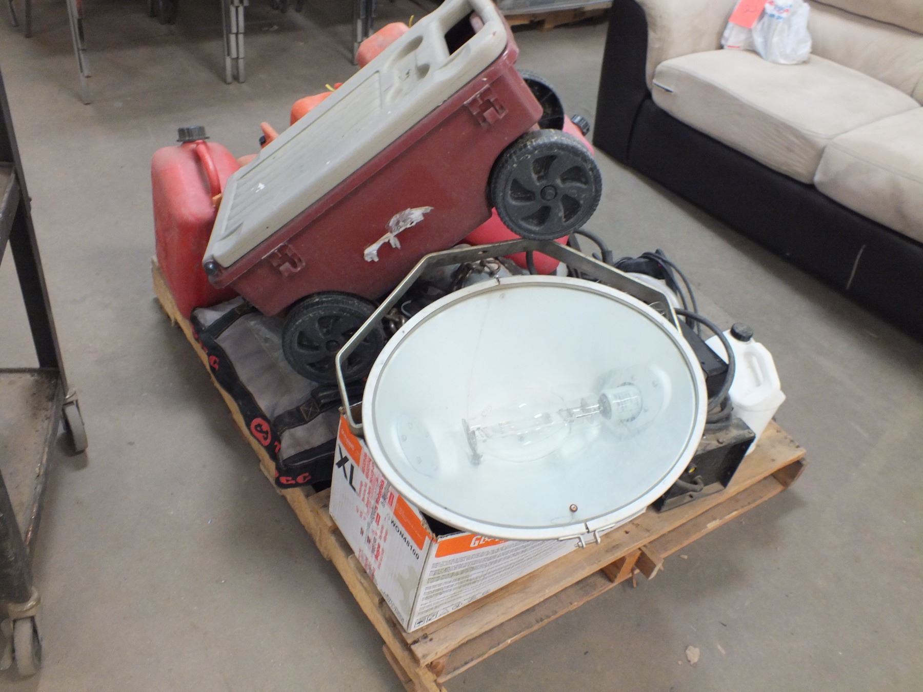 you get t all for one money, outdoor light, 2 light plant testers, cooler wagon, tire chains, jerry cans, 12 volt cab n cargo heater, and 2 circular saws....used