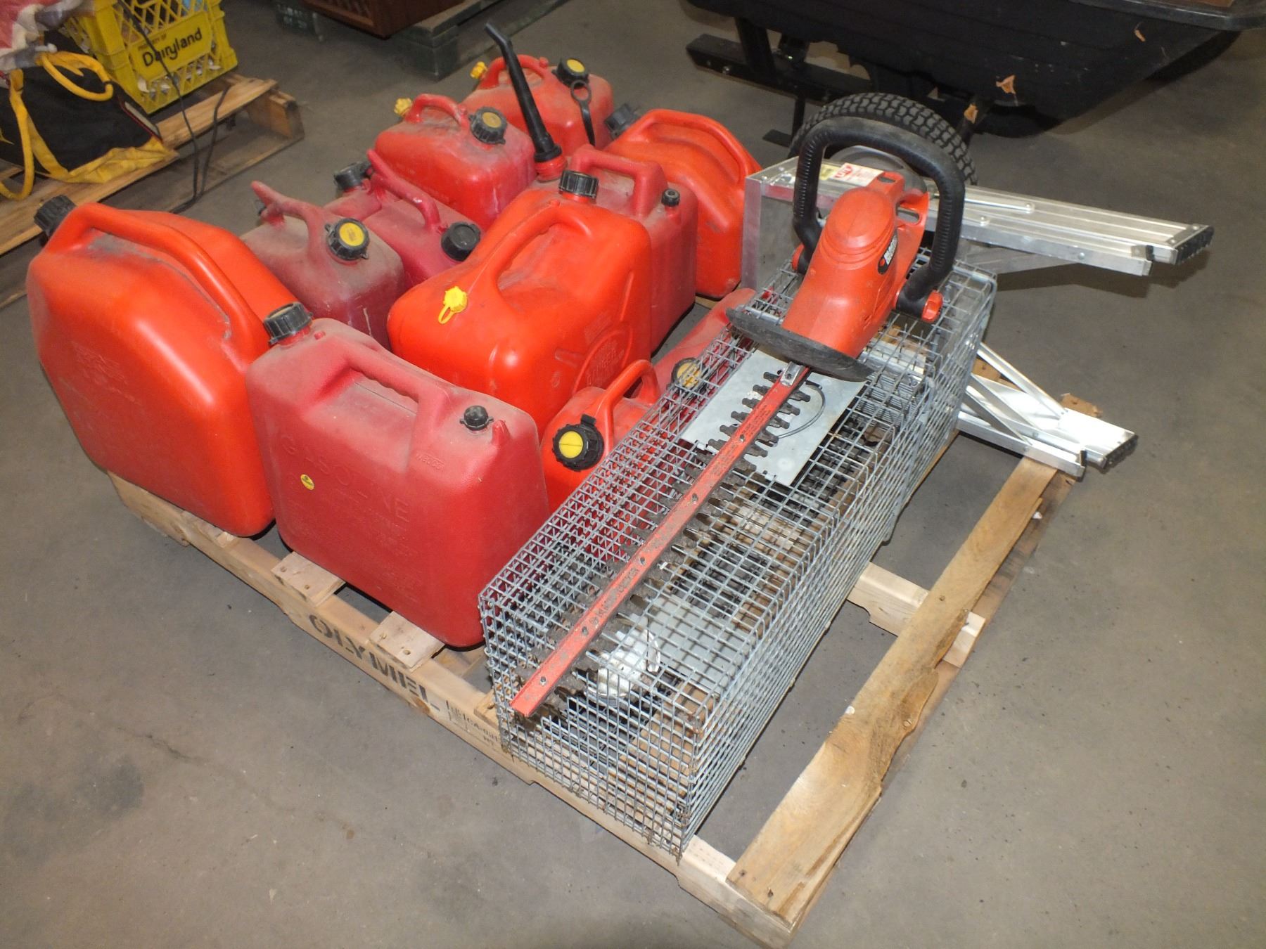 you get it all for one money, 11 jerry cans, small animal trap, small step ladder, Black n decker electric hedge clippers...used