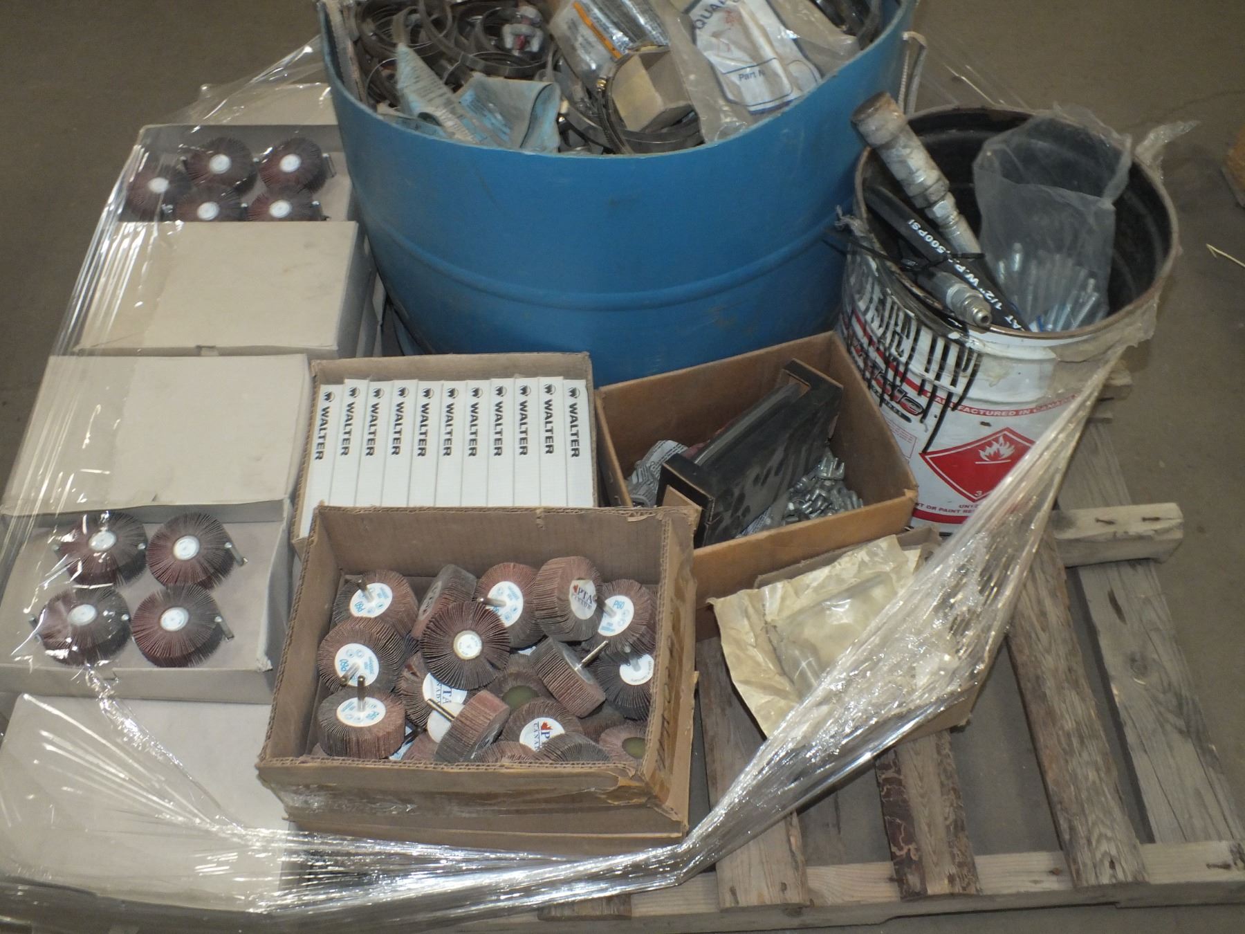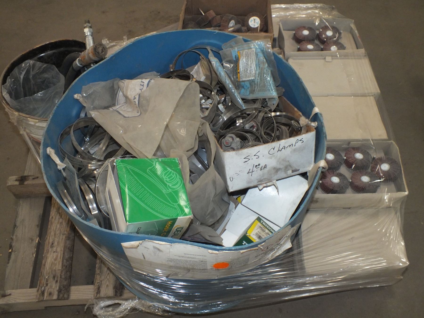 you get it all for one money, assorted hose clamps, flap disc's for drills, metal hardware, hydraulic hose, Walter baking pads for sand paper...new/used