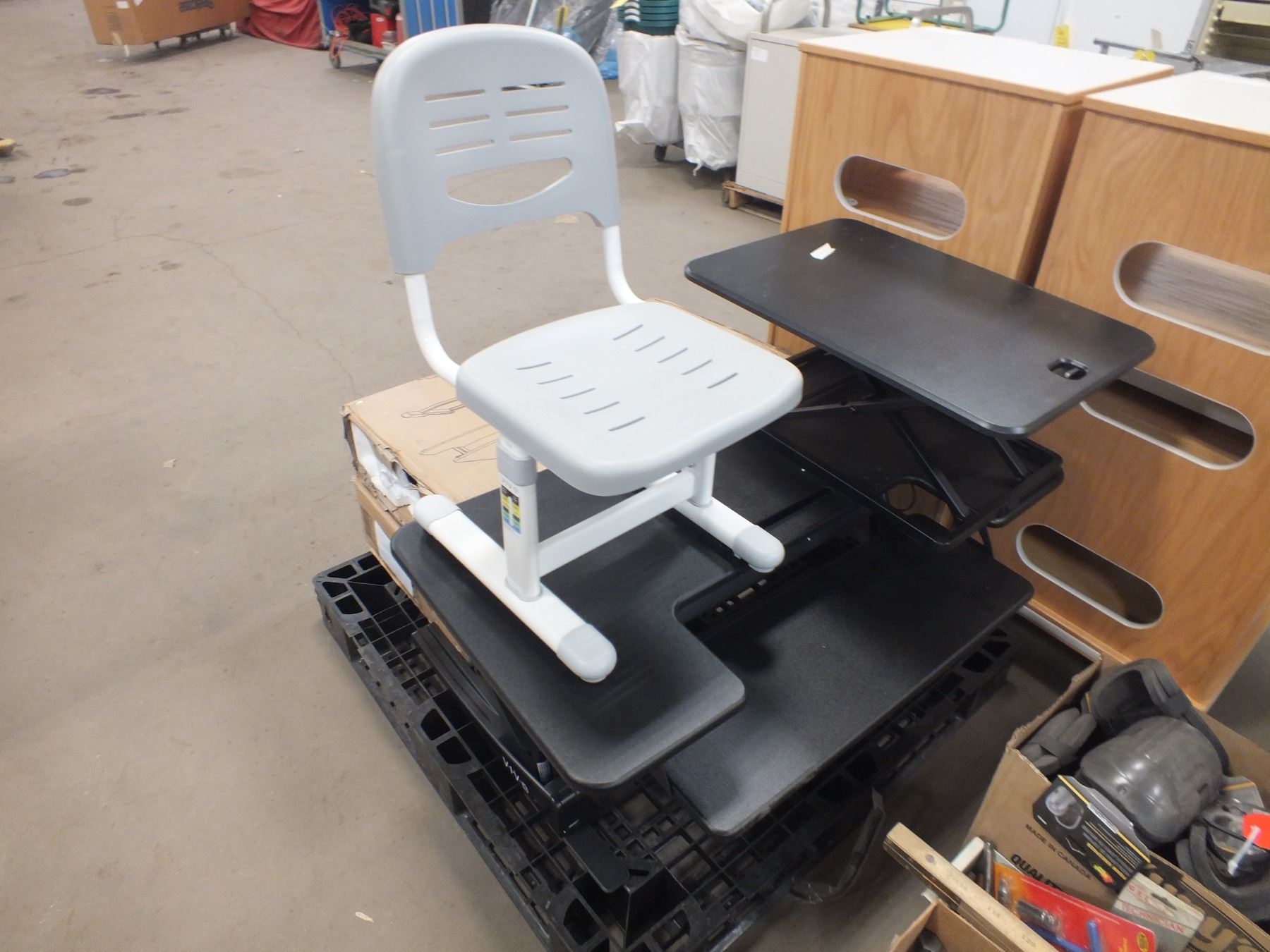 you get it all for one money, 4 desk riser 1 plastic kids chairs...used