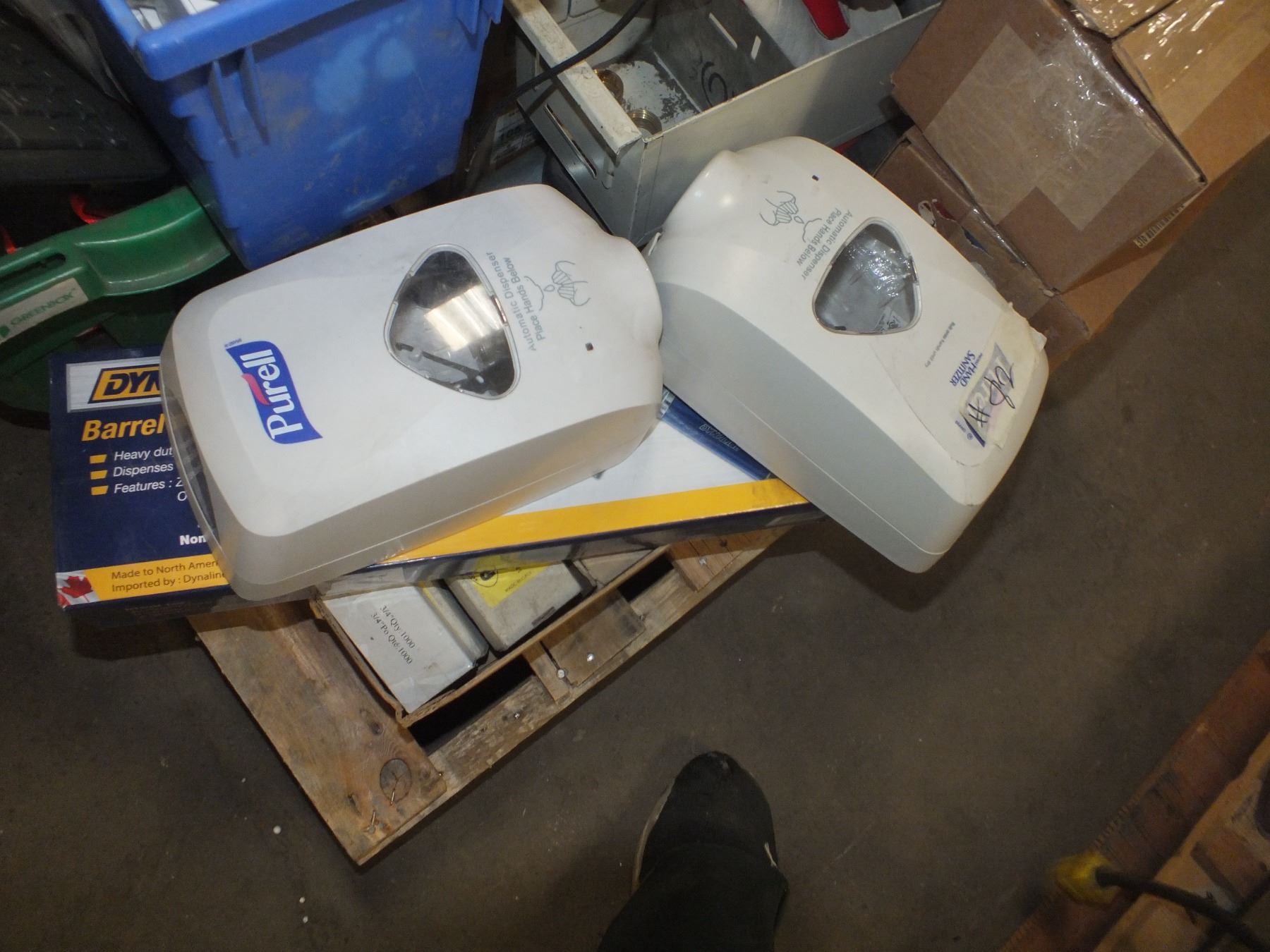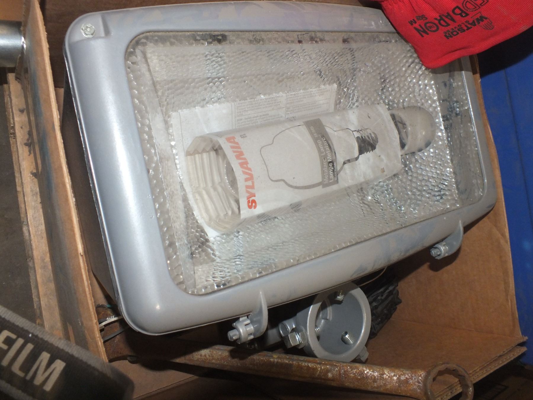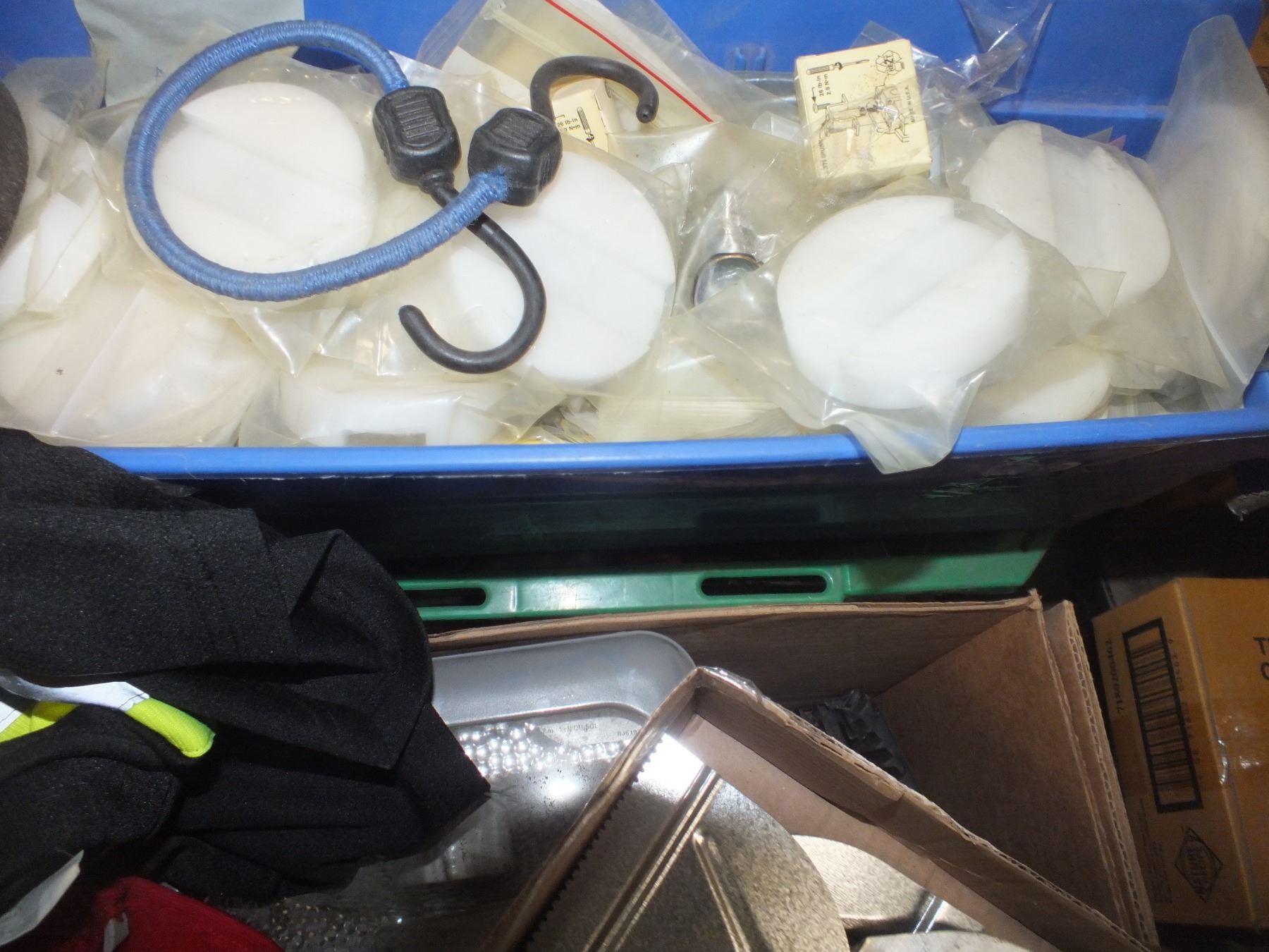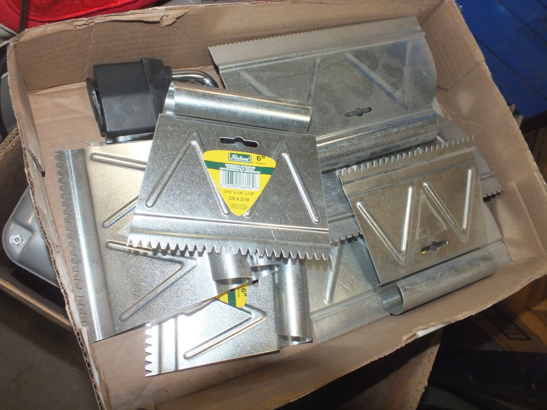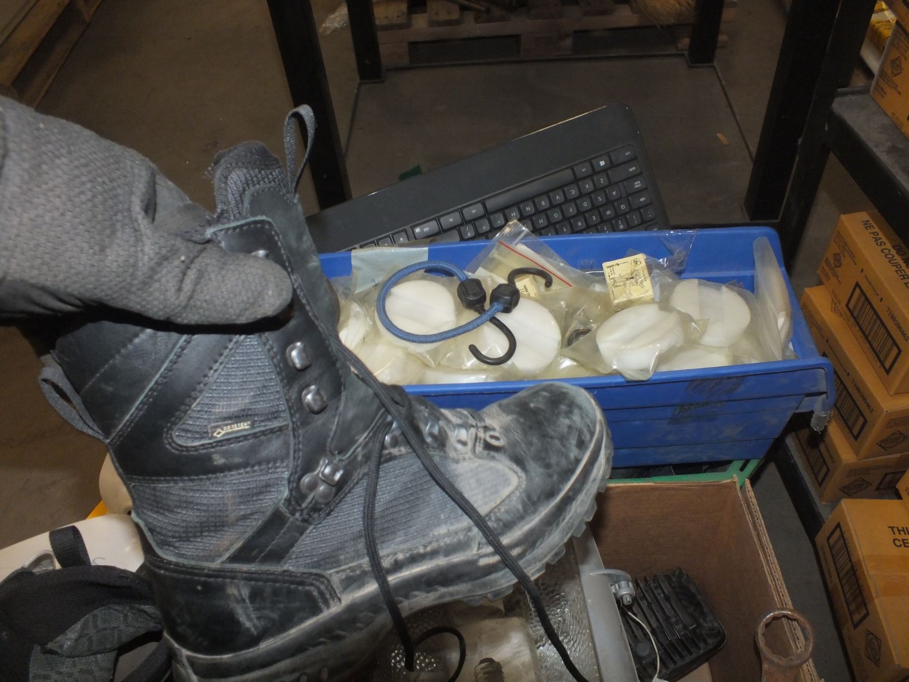 you get outdoor light, adessive trowels, soap dispensers, tool holders, keyboard, work boots, tool box, light housings...used