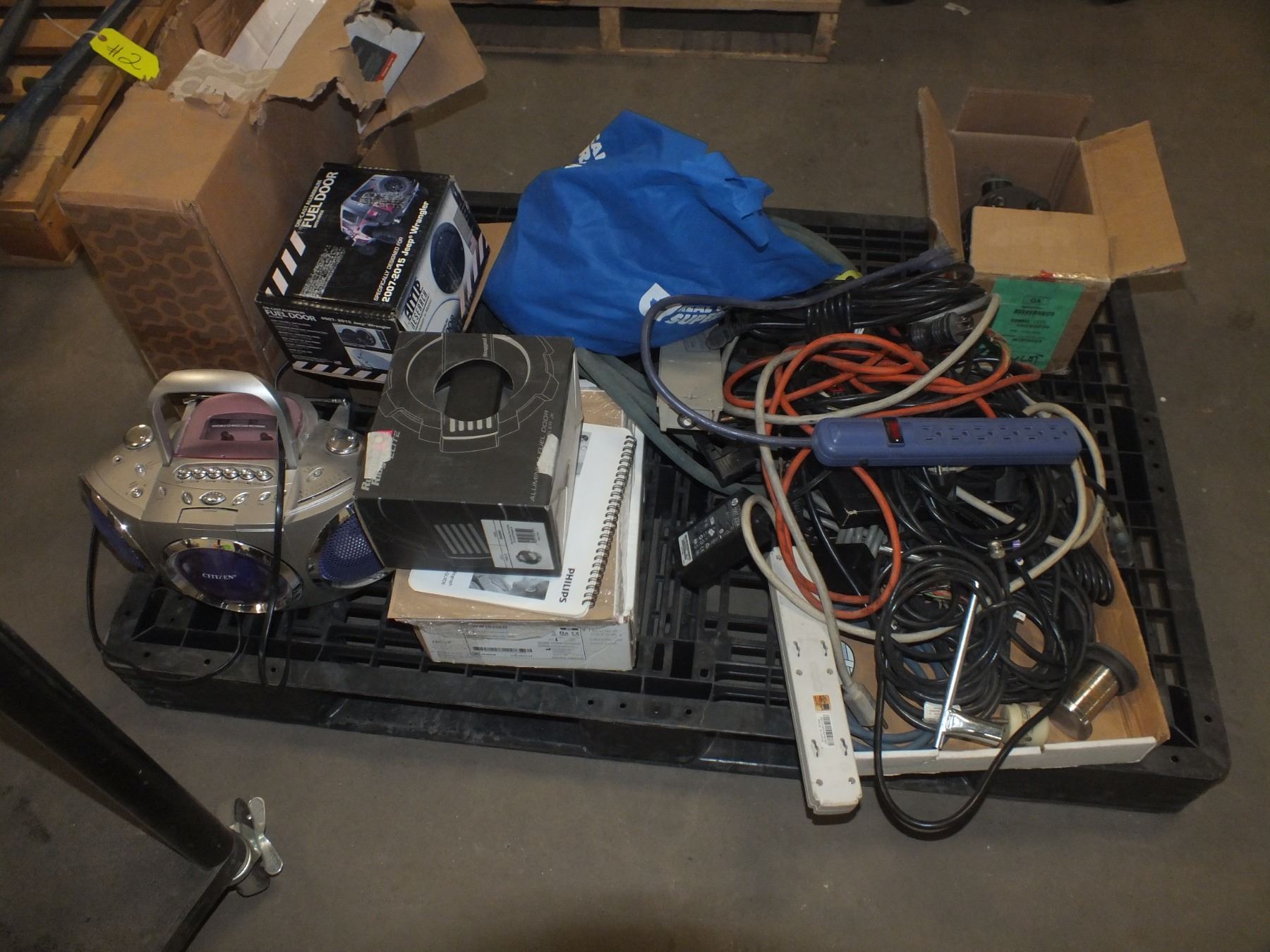 you get assorted cords, air hose, small stereo, air freshener, and car parts...used