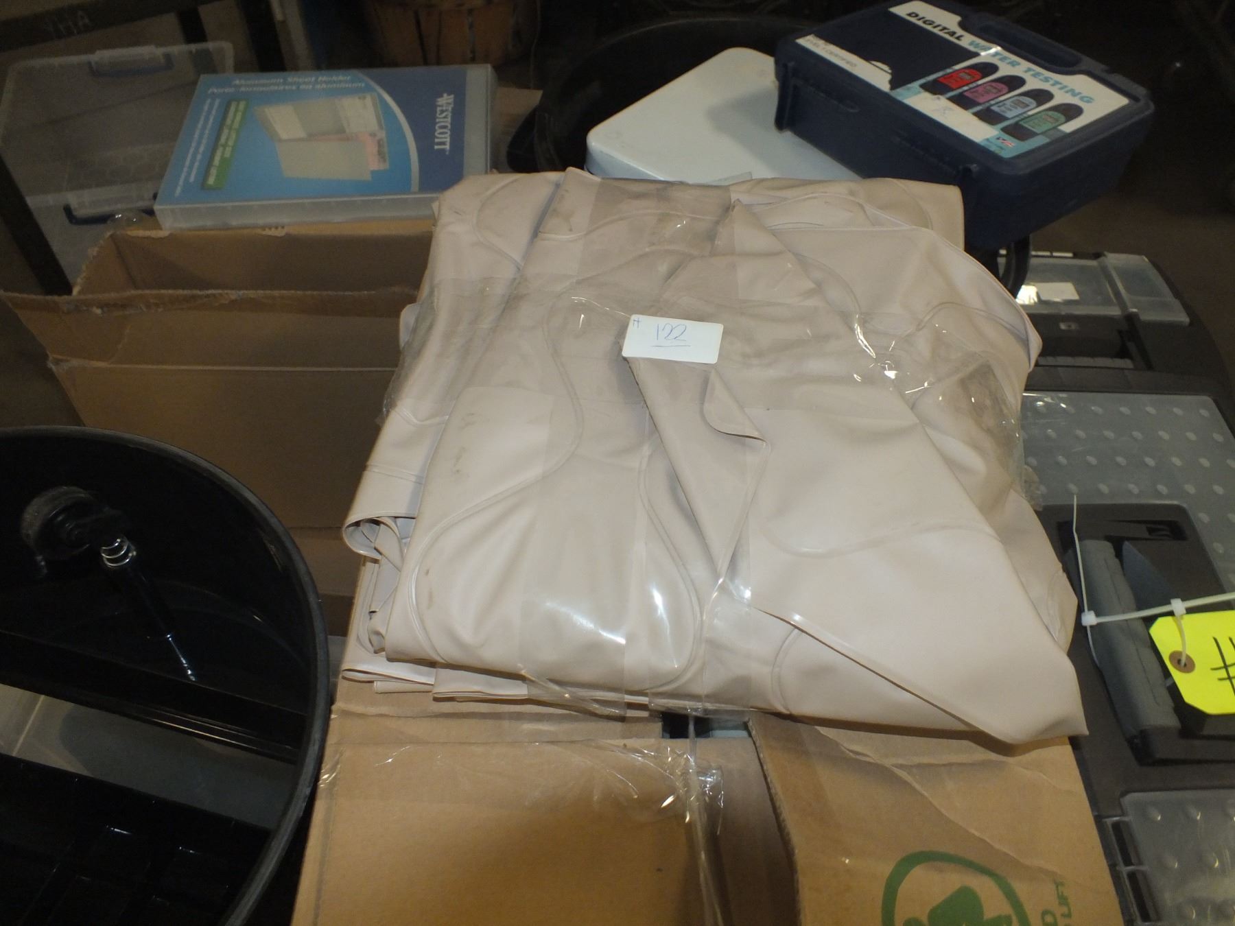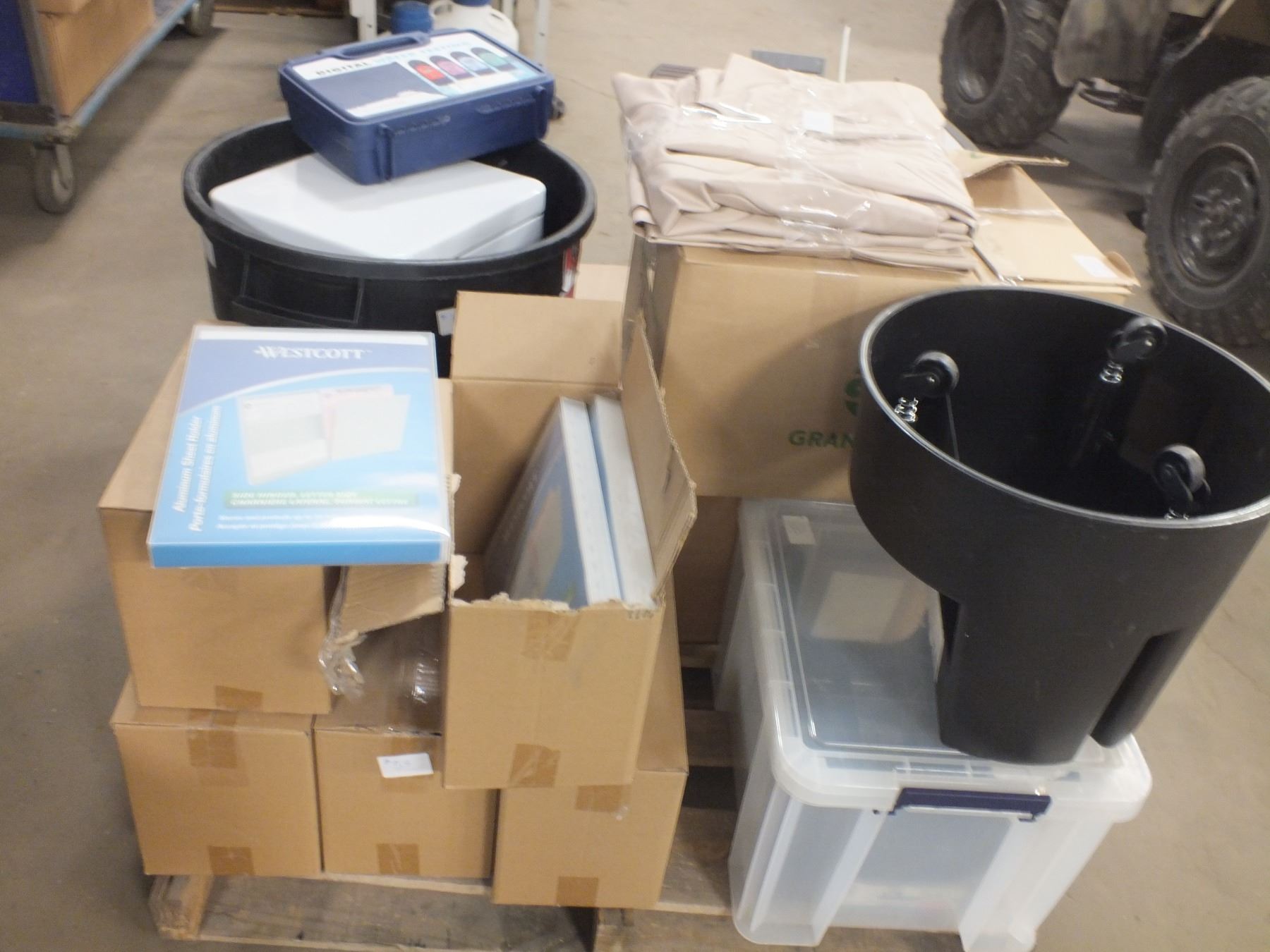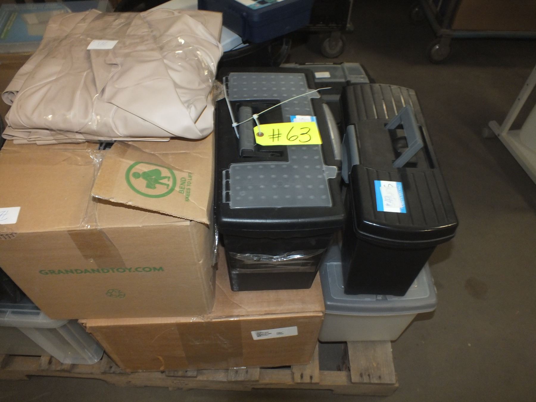 you get it all for one money, plastic tool boxes, step stool, air mattress, trash cans, and clip boards...new/used
