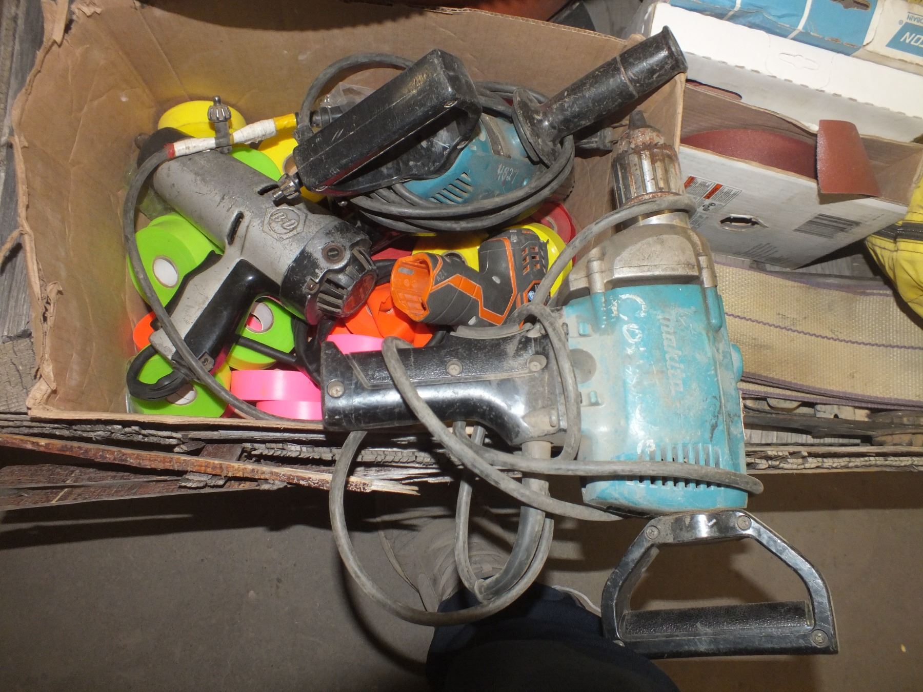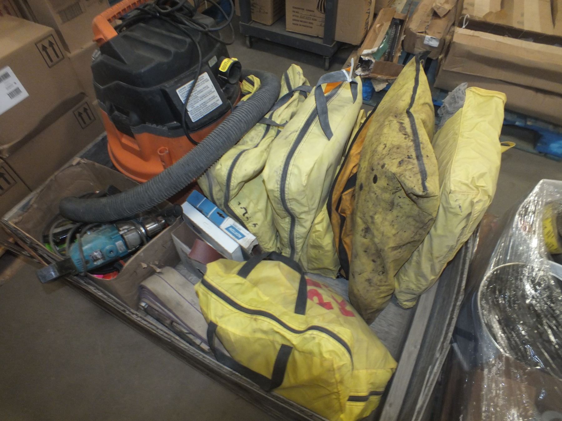 you get spill kits, shop vac, 2 Makita drills, ribbon, sand paper...sold as is / where is...used