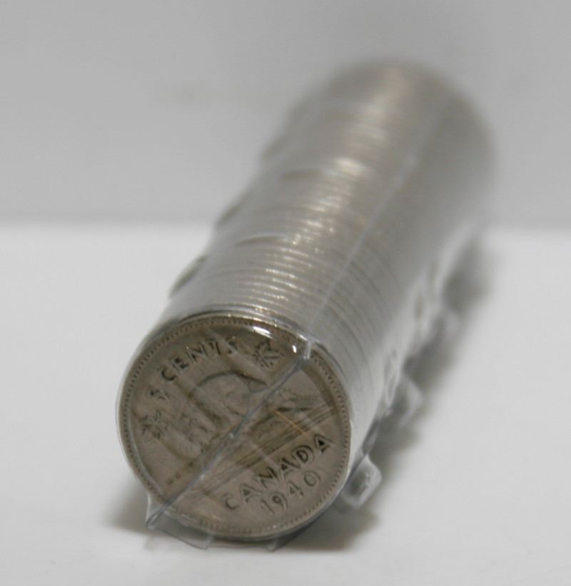 Mixed Roll of Canadian 5-Cent Nickel Coins - 1937-1940