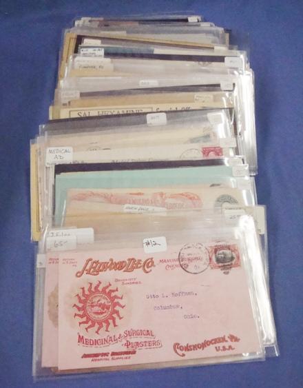 Interesting lot of over (100) covers and postcards from over a dozen good stampless to mostly early 20th c. material. Several better South Carolina stampless. Former bourse dealer stock so all sleeved and price at over $1000. Worth review. Est.$200-300