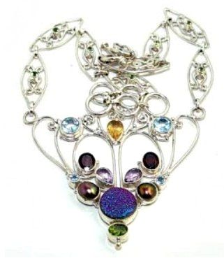Silver and Mixed Stones, Titanium Drusy & Pearl Necklace. Allow 6 to 8 weeks for delivery.
