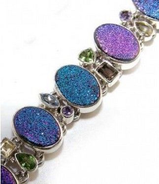 Silver & Mixed Stones and Titanium Drusy Bracelet. Allow 6 to 8 weeks for delivery.