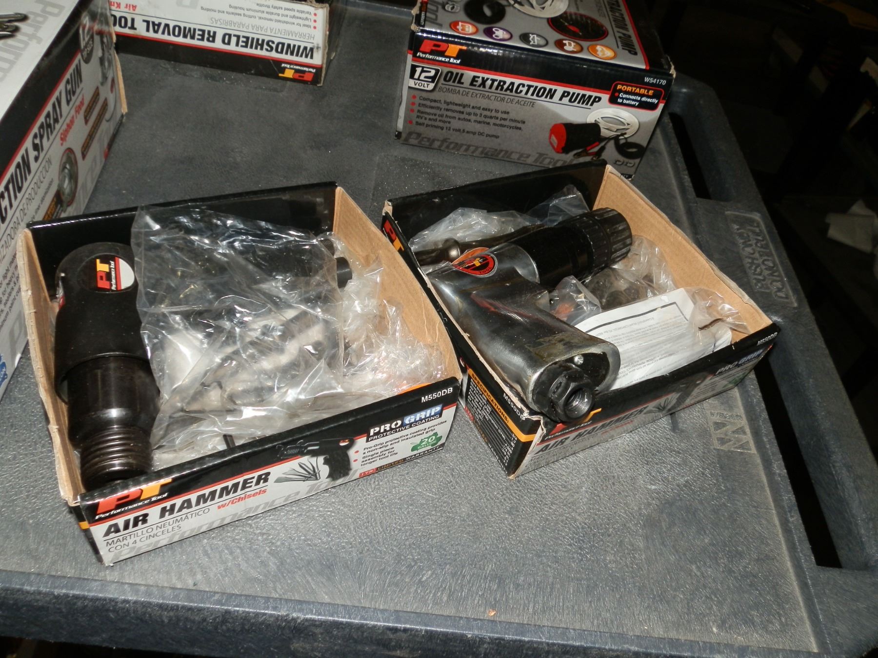 you get it all for one money, heat gun, oil extraction pump, spray gun, windshield removal tool, 2 air hammers, untested condition unknown....