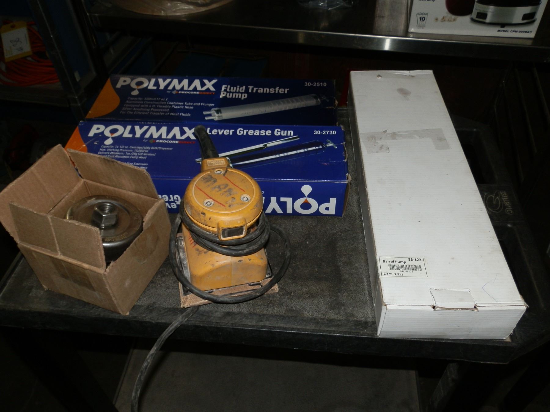 you get it all for one money, Fluid Transfer Pump, Grease Gun, Barrel Pump, Soldering Tool, Palm Sander, and a wire brush attachment...New/Used