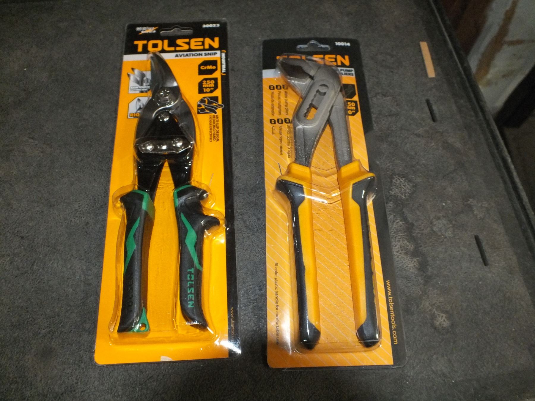 you get 1 pair of water pump pliers, and 1 pair of Aviation Snips, both are new...