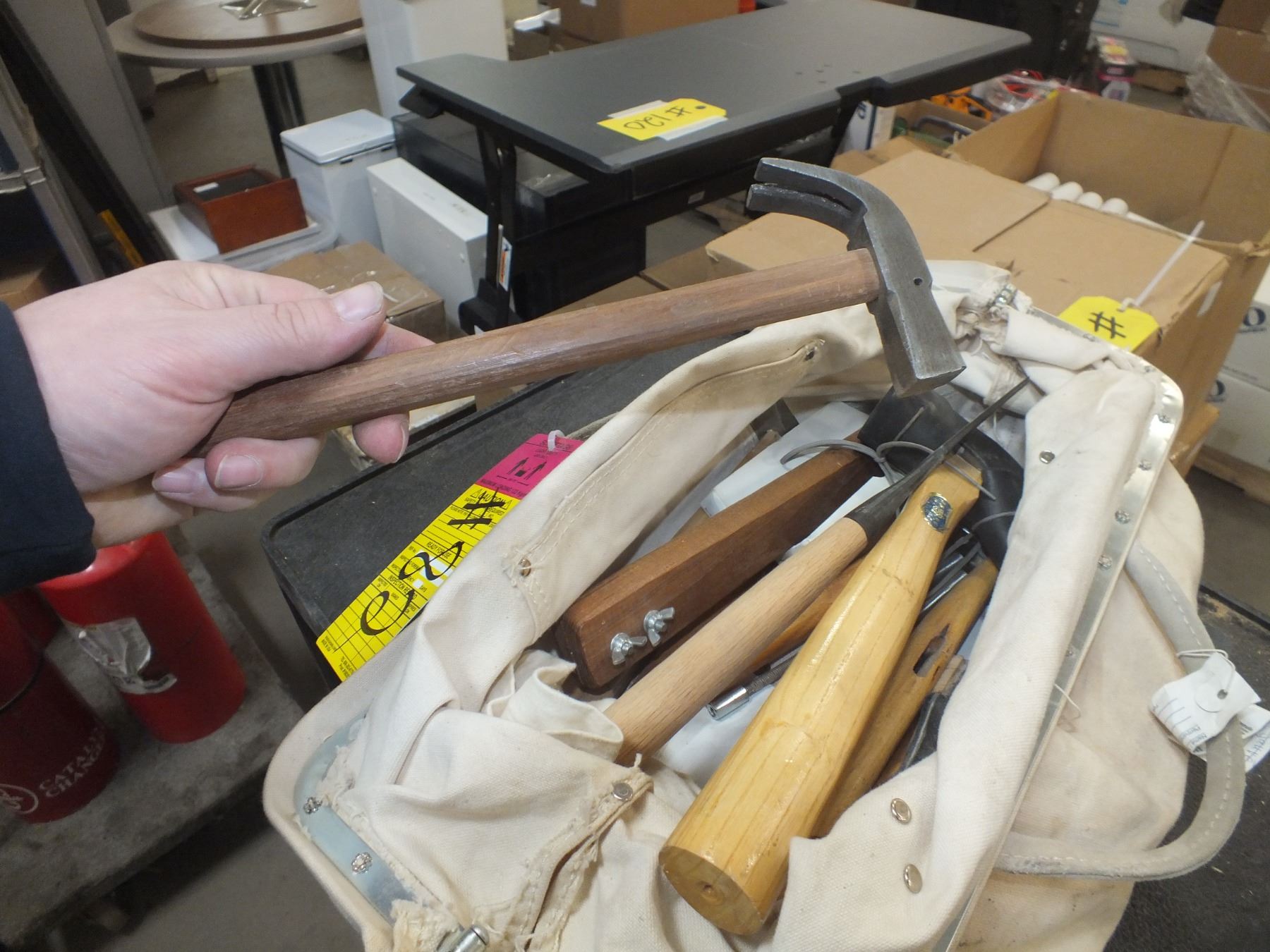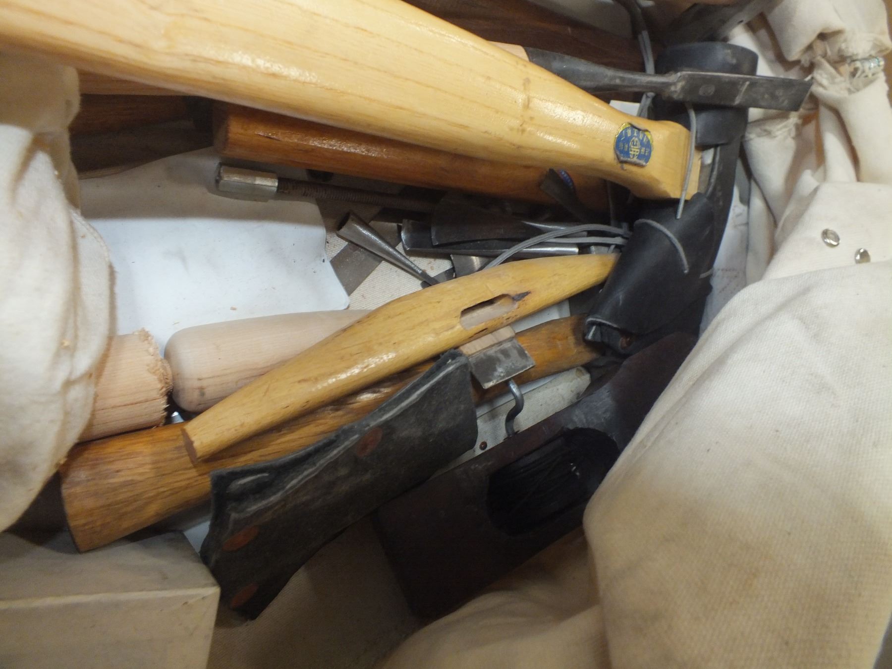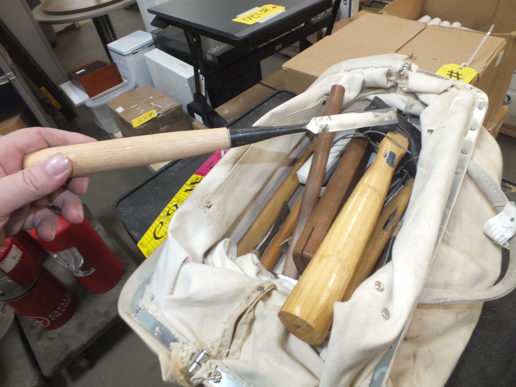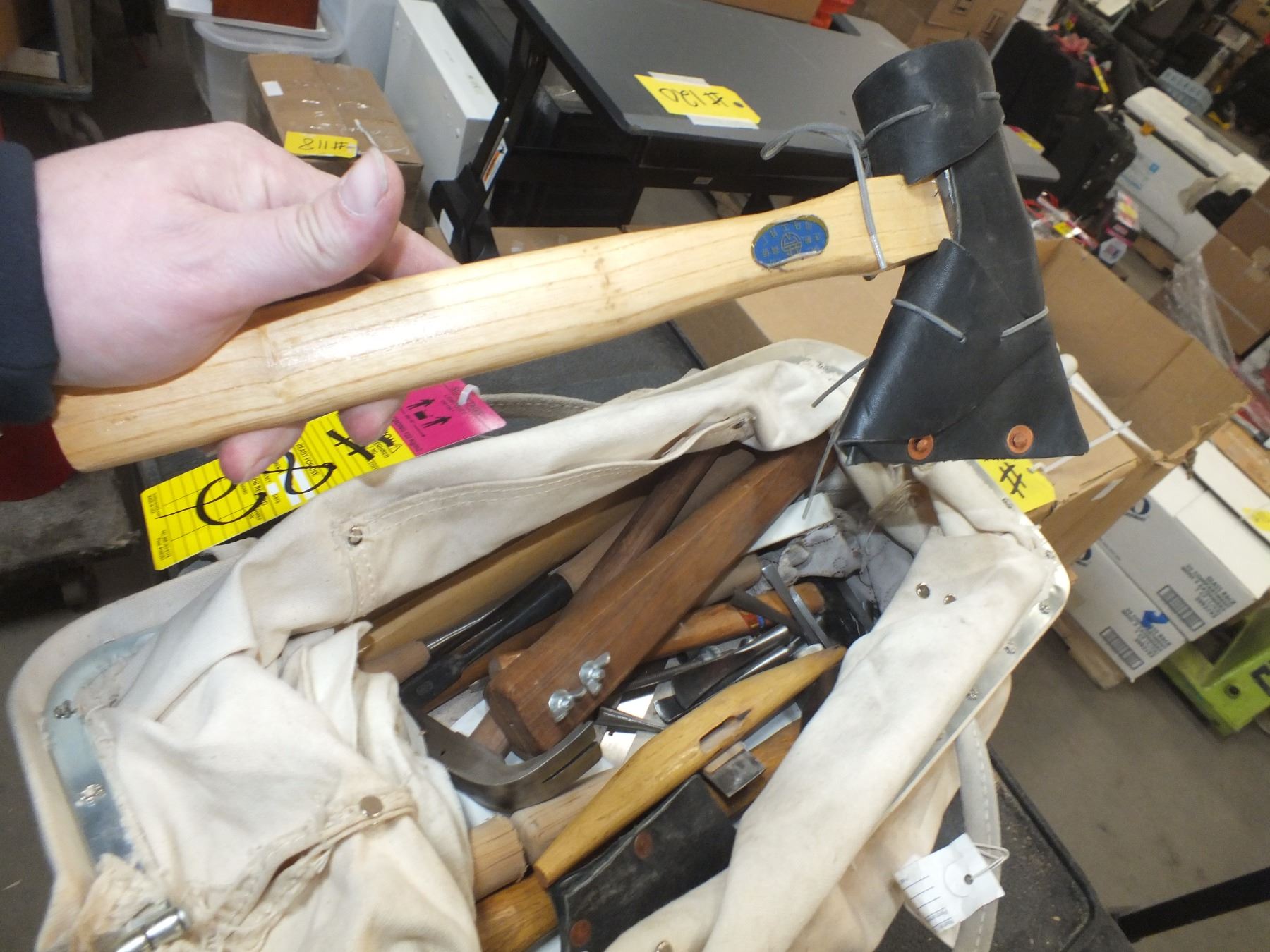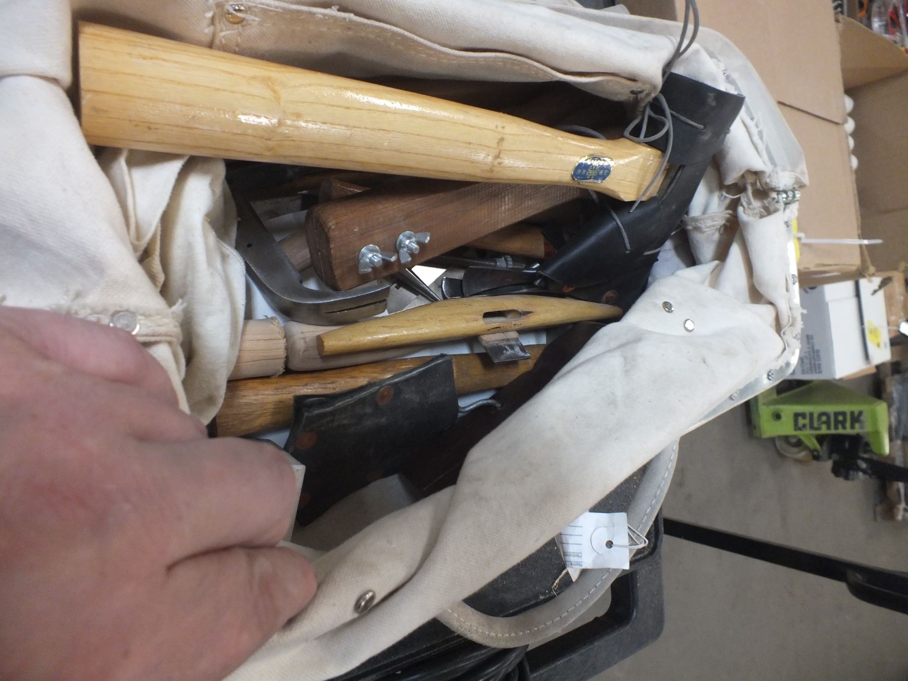 you get hatchet, hammers, wood lathe chisels, and chisel ends...used
