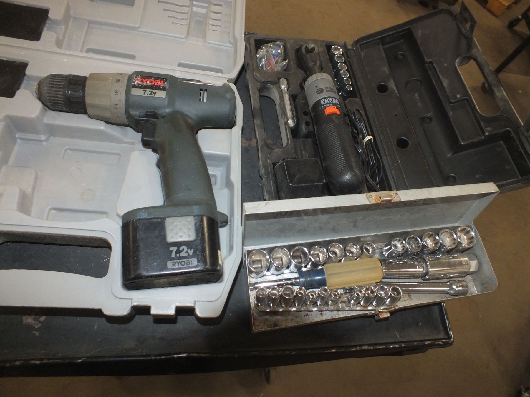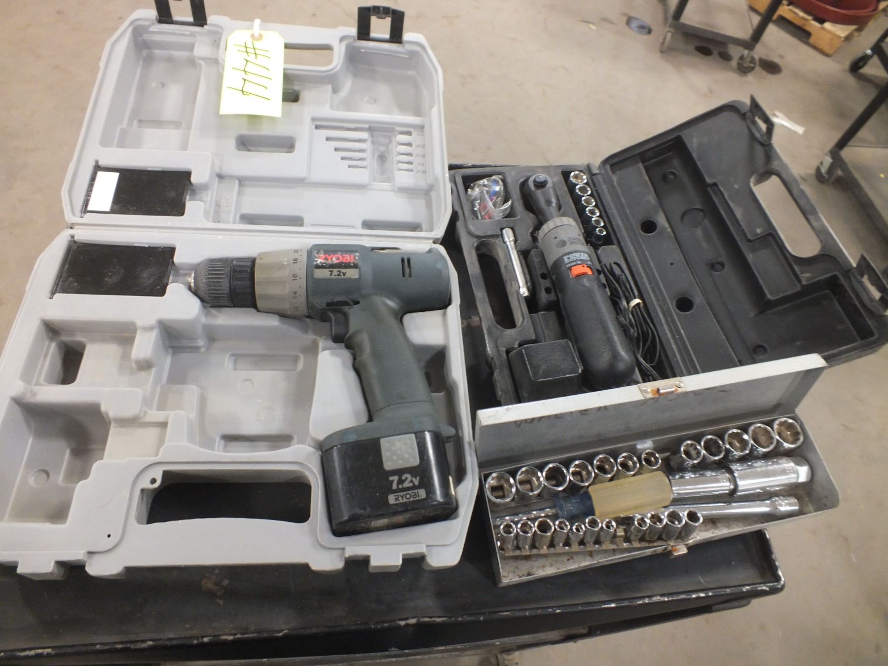 you get Black n Decker Electric Ratchet, Ryobi 7.2 Drill comes w/ 1 battery no charger and assorted sockets...used