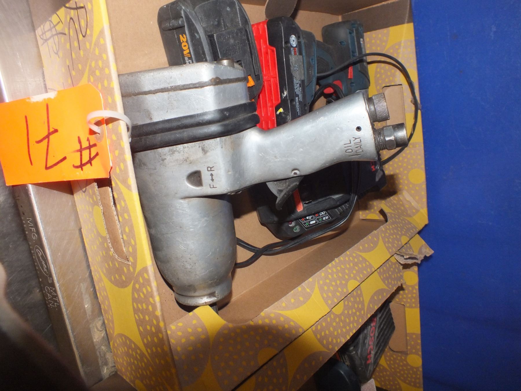 you get air wrench, Bosch drill and charger no battery and a worx battery...sold as is / where is...used