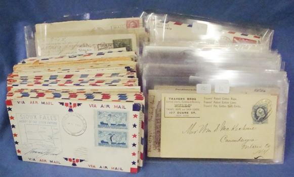 Interesting hodge podge of (150)+ covers incl many advertising covers, first flights, parcel post used as regular postage cards and covers, etc. Many useful $1-20 covers and cards here. Est.$200-300