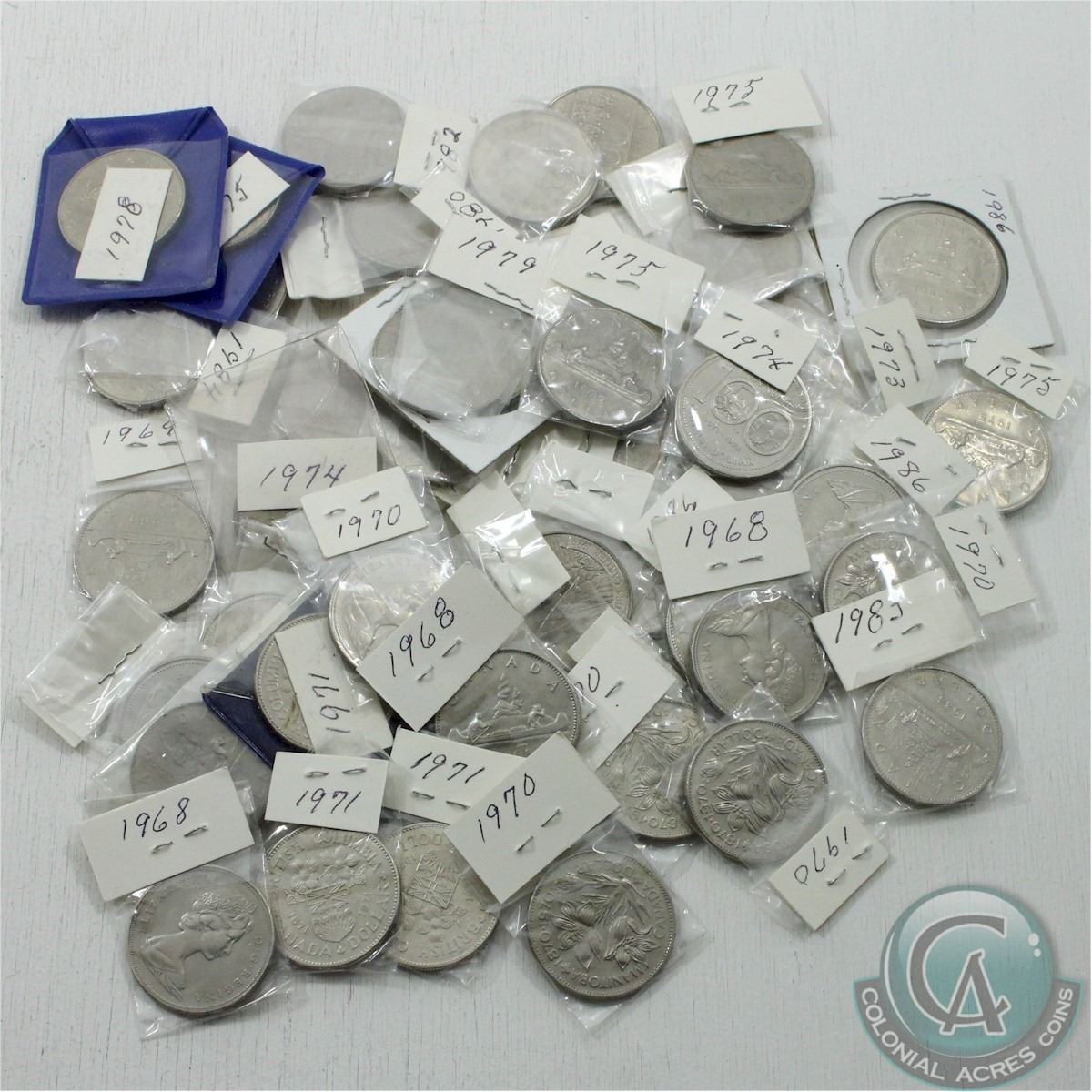 Mixed bag of 46x Canada Dollars 1968-1986. You will receive at least one coin from each date except 1976 and 1977.